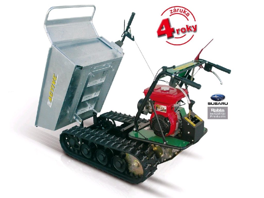 Často používaný je tento přepravník na staveništích, při rekonstrukcích budov, ale také při zakládání zahrad, protože pásy rovnoměrně rozkládají hmotnost stroje s nákladem a ten se neboří a nezanechává rýhy v terénu. Přepravit bezpečně těžký náklad kamkoliv potřebujete Vám tyto stroje usnadní i díky důmyslným konstrukčním prvkům - sklápěcí korba , nastavení i pro přepravu rozměrných nebo sypkých nákladů, odolné pásy s výbornou trakcí, moderní a spolehlivé japonské motory Robin Subaru.