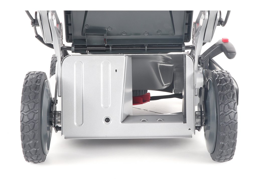 Univerzálně použitelné a extrémně ovladatelné. Pohyblivý odklápěč trávy. Speciálně tvrzené nože ESM s ochranou hran. Plynule výškově nastavitelné podběhy.
