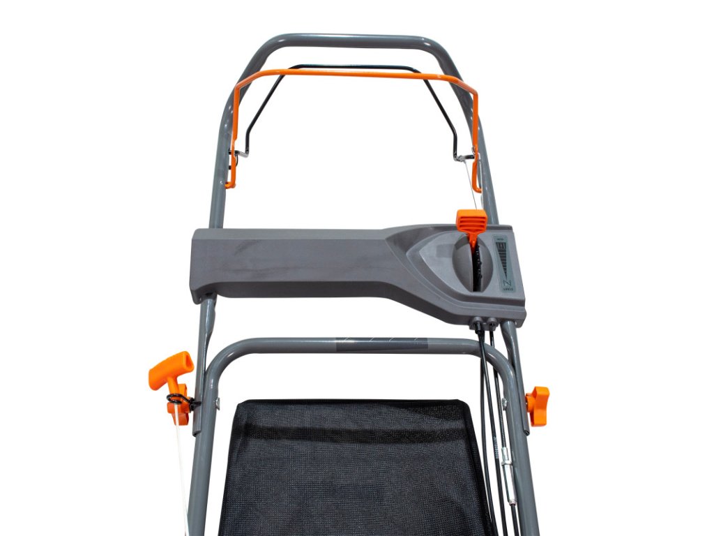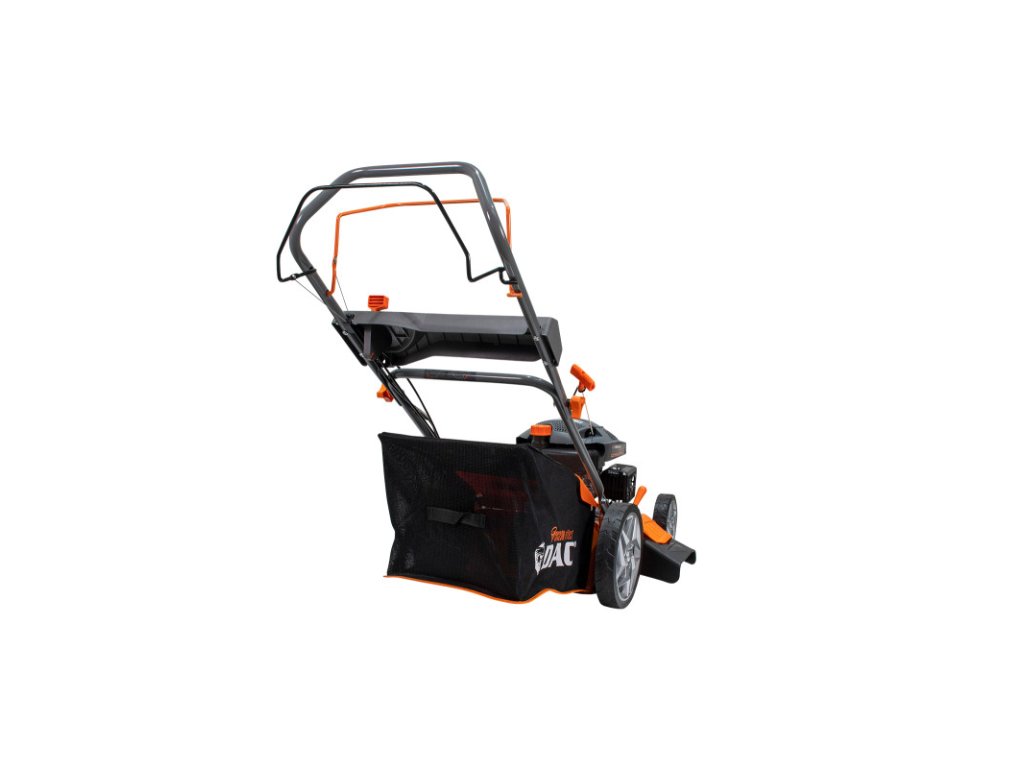 Ergonomický skládací systém rukojeti a sběrný vak o objemu 55 l usnadňují skladování a přepravu sekačky na trávu DAC 120XL.