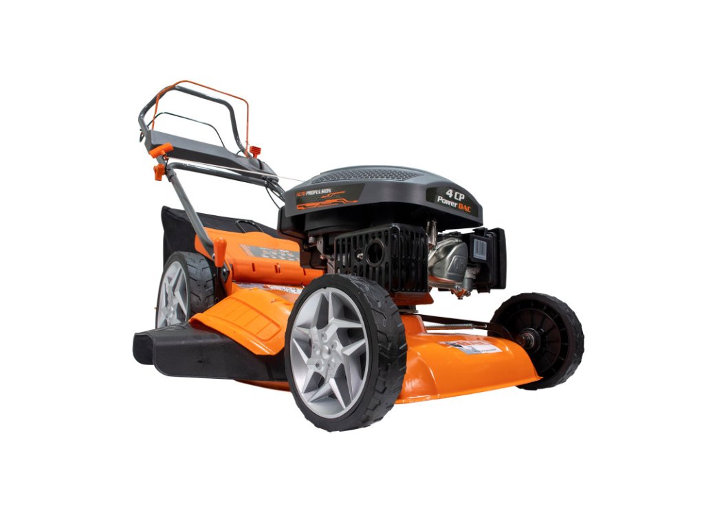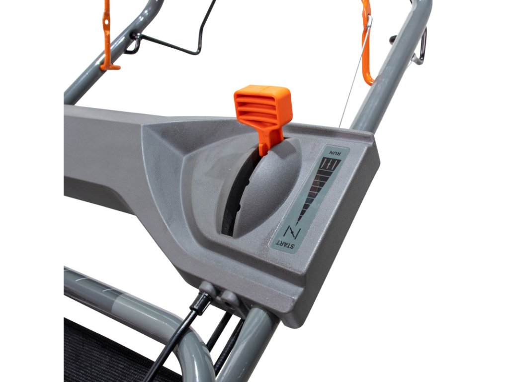 Velký průměr kol (19,5 cm vpředu / 27 cm vzadu) umožňuje sečení trávníku i na svazích. Systém s vlastním pohonem zároveň nabízí komfort, efektivitu a zkrácenou pracovní dobu.
