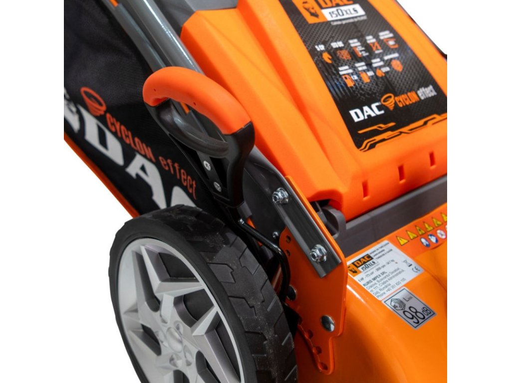 Sekačka pro efektivní a rychlou péči o trávník bez námahy, sečení na velkých plochách, s funkcí sběru, zadního vyhazování, bočního vyhazování, mulčování a samočištění. Sekačka RURIS DAC 150XLS je vybavena čtyřtaktním motorem o výkonu 5 HP (objem válců 173 cm3) a má pracovní šířku 502 mm.