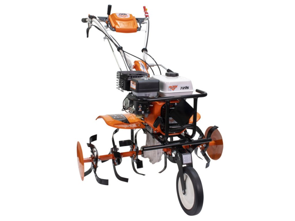 Benzínový kultivátor 721S spojuje to nejlepší z obou světů – kompaktní rozměry modelů RURIS 6500 / 7000 a sílu legendárního kultivátoru RURIS 732. Robustní litinová převodovka s ozubenými koly pracujícími v olejové lázni zaručuje dlouhou životnost a spolehlivý přenos výkonu i v náročných podmínkách. Přední přepravní kolo usnadňuje manipulaci a přesun po zahradě či dvoře. Ideální pomocník pro obrábění půdy, orbu, kypření i přípravu záhonů.