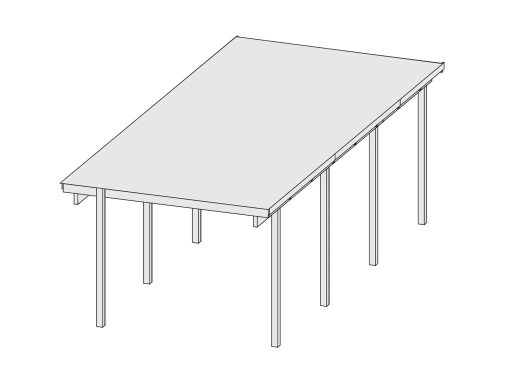 Přístřešek na auto - obdélníkový tvar a svými rozměry vyhovuje většině modelů vozidel běžných na českém trhu. Celková zastřešená plocha je 3,04 x 6,76 m. Průjezdná výška je 206 cm. Střechu podpírá osm dřevěných sloupků 9 x 9 cm. Konstrukce přístřešku je tlakově impregnována a je tak dobře chráněna proti dřevokazným houbám i hmyzu, ale i proti nepříznivým povětrnostním podmínkám. Impregnace je zdravotně nezávadná a naprosto bezpečná. Vzhledem k velkým plochám střechy a zatížení větrem je nutné připevnit přístřešek k zemi pomocí odpovídajících zemních kotev (nejsou obsahem dodávky - lze dokoupit jako příplatkové příslušenství).