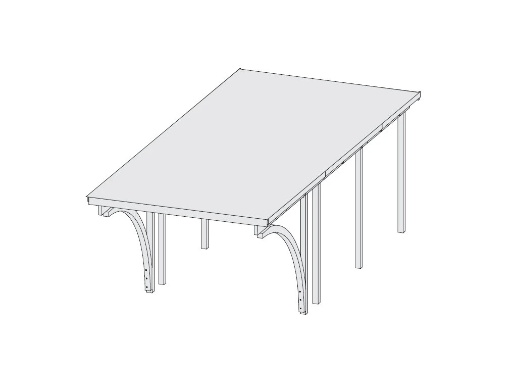 Tento model přístřešku obsahuje dva vjezdové oblouky, které výrazně ulehčují vjezd pod přístřešek z obou stran.