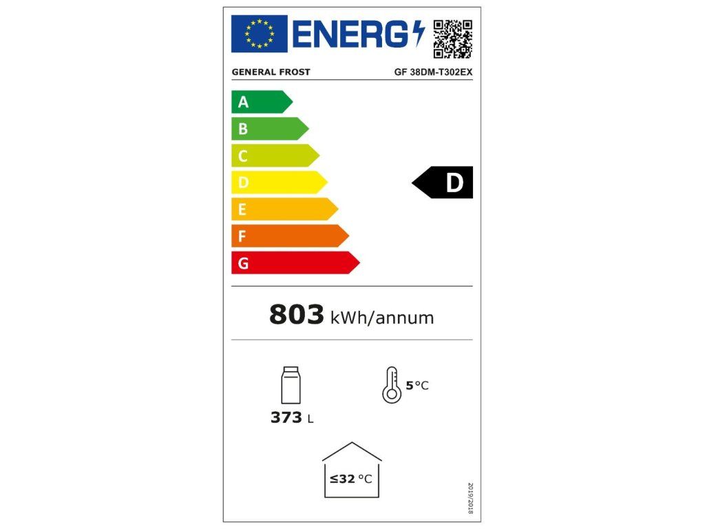 Prosklená chladicí vitrína General Frost GF38DM-T302EX s kapacitou až pro 476 plechovek o objemu 0,33 l. Vitrína má celkový objem 373 litrů a výšku 181 cm. Chladicí teplota je v rozsahu od 1 až 9 °C. Uvnitř chladničky naleznete 5 drátěných poliček pro uspořádání zboží. Ve spodní části jsou 2 zadní kolečka a 2 přední nožičky pro bezpečnou manipulaci.