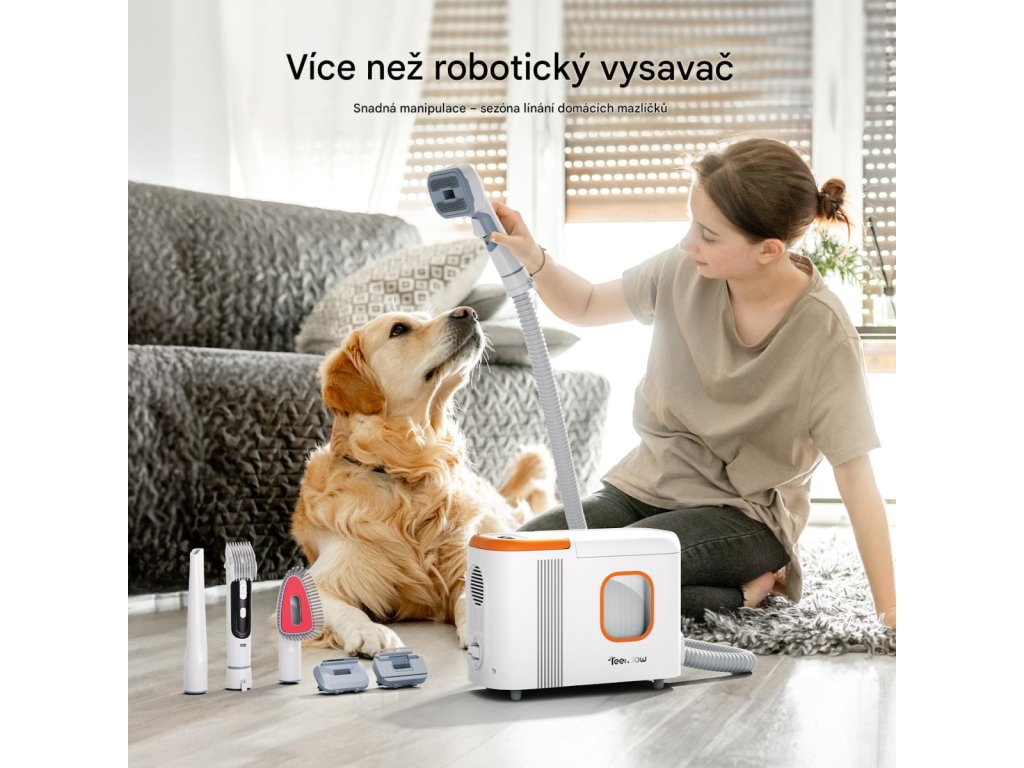 Pravidelná péče podporuje růst srsti a snižuje množství alergenů. Během línání robotický vysavač efektivně vysává srst, čímž zabraňuje jejímu rozptylování po okolí.