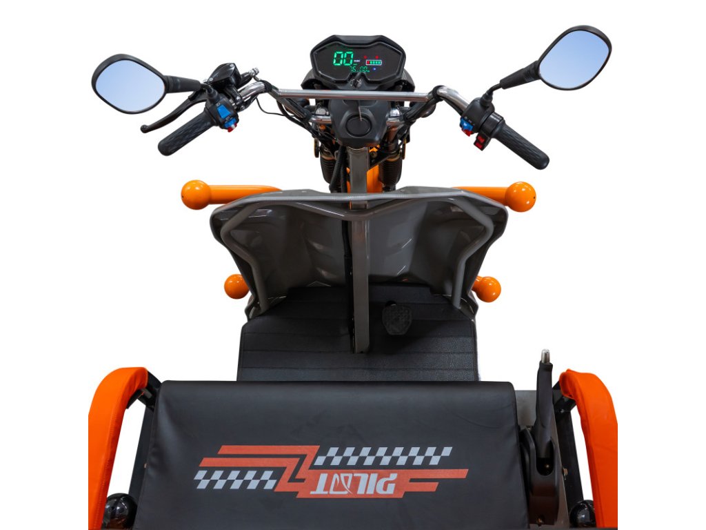 Tříkolka je vybavena extra velkým LCD displejem, který výrazně zlepšuje uživatelský komfort. Velkorysá obrazovka umožňuje rychlé a přehledné zobrazení všech důležitých údajů – rychlosti, stavu baterie, počtu ujetých kilometrů a dalších funkcí – i při jasném denním světle. Přispívá tak k bezpečnějšímu a intuitivnějšímu používání.