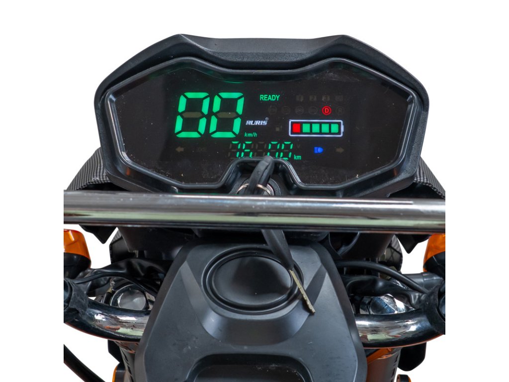 Tříkolka je vybavena extra velkým LCD displejem, který výrazně zlepšuje uživatelský komfort. Velkorysá obrazovka umožňuje rychlé a přehledné zobrazení všech důležitých údajů – rychlosti, stavu baterie, počtu ujetých kilometrů a dalších funkcí – i při jasném denním světle. Přispívá tak k bezpečnějšímu a intuitivnějšímu používání.