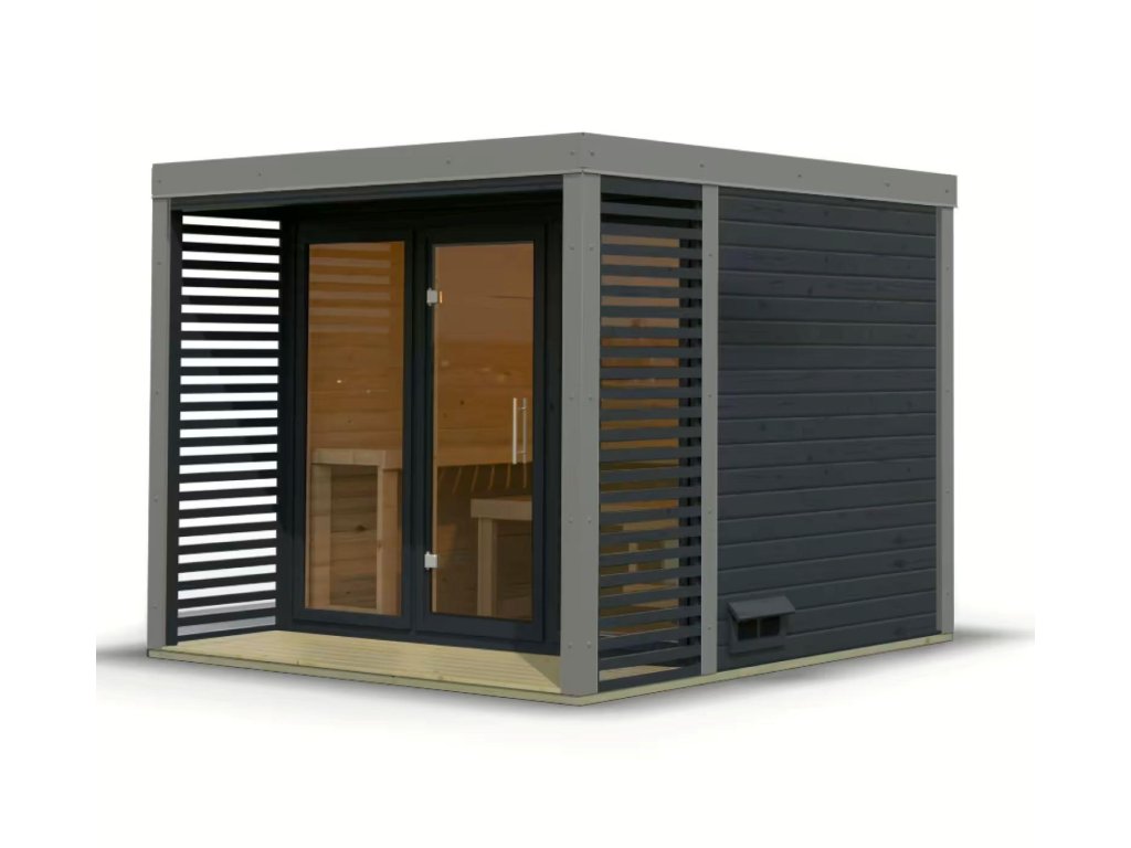 - barva: antracit (sauna) + světle šedé oplechování