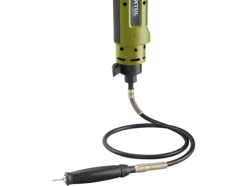 - pomocí přiloženého ohebného nástavce ji můžete používat jako přímou brusku na řezání, broušení, smirkování, leštění a rytí přesných tvarů do dřeva, plastu, kovu, skla, kamene…