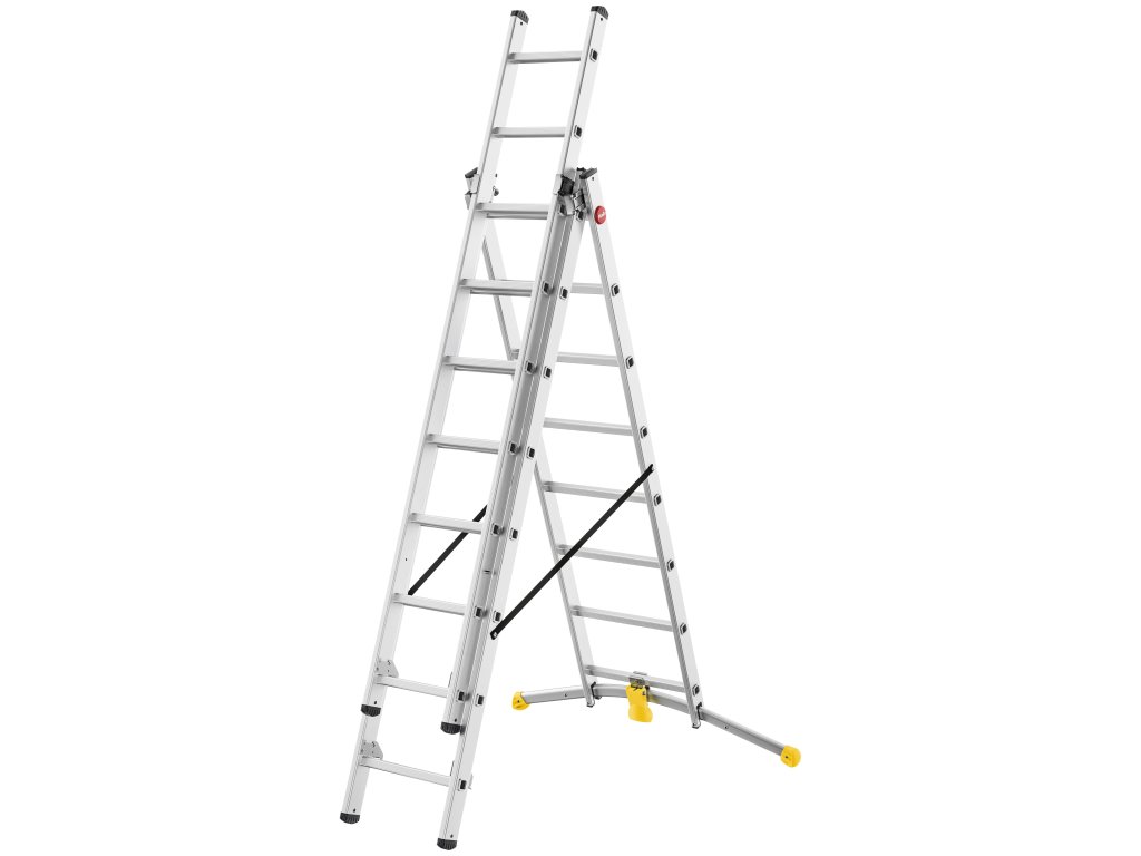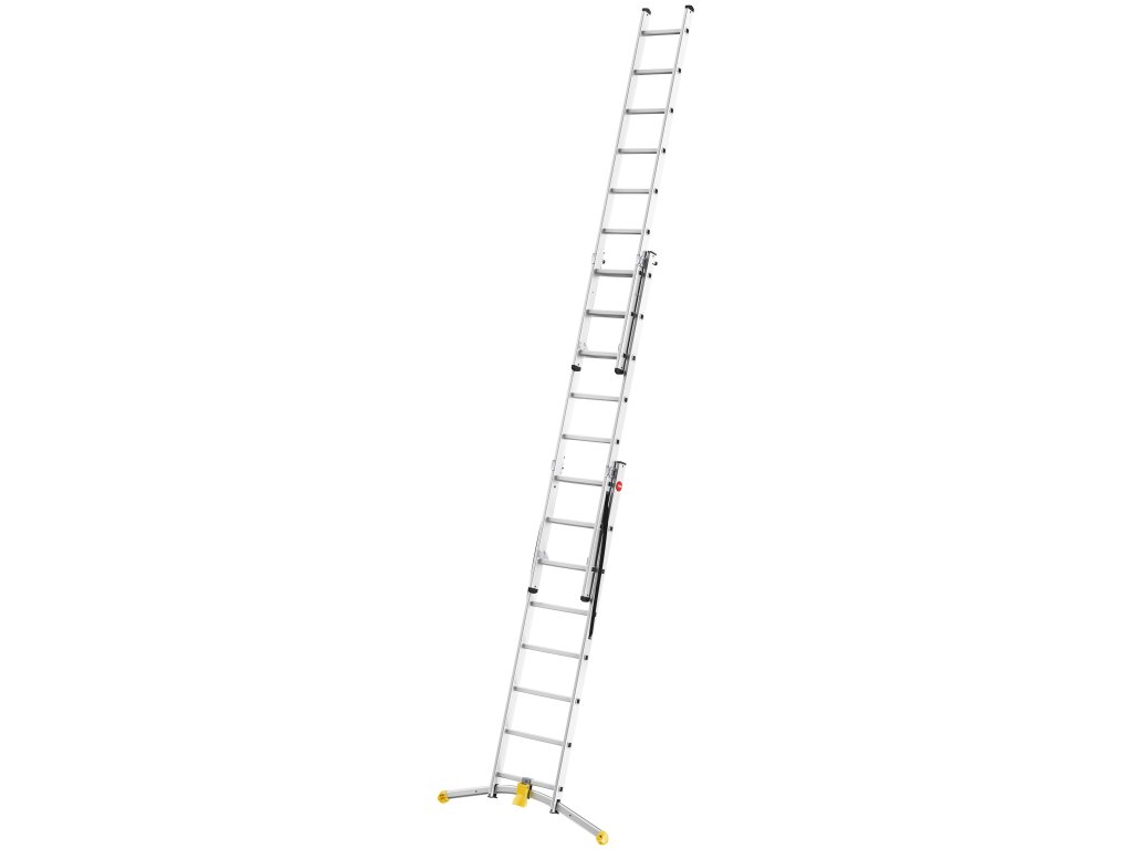 Jeden hmat – a z třídílného žebříku se stává dvoudílný výsuvný žebřík. Nebo jednoduchý příložný žebřík. Nebo volně stojící štafle. Optimální řešení: flexibilní, mnohostranné a bezpečné.
