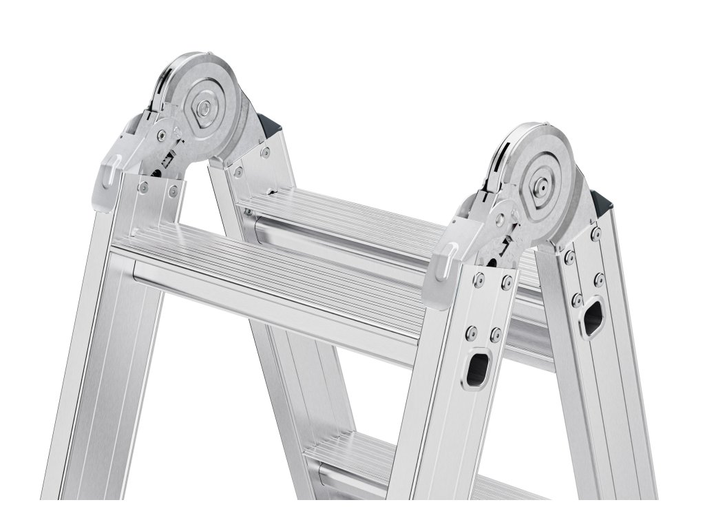 - 2 bezpečnostní klouby (lze zajistit a odjistit) pro nastavení jako štafle nebo příložný žebřík