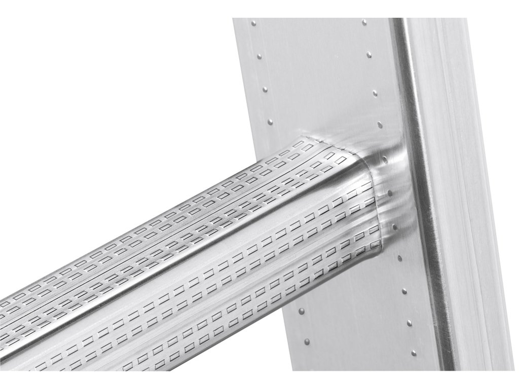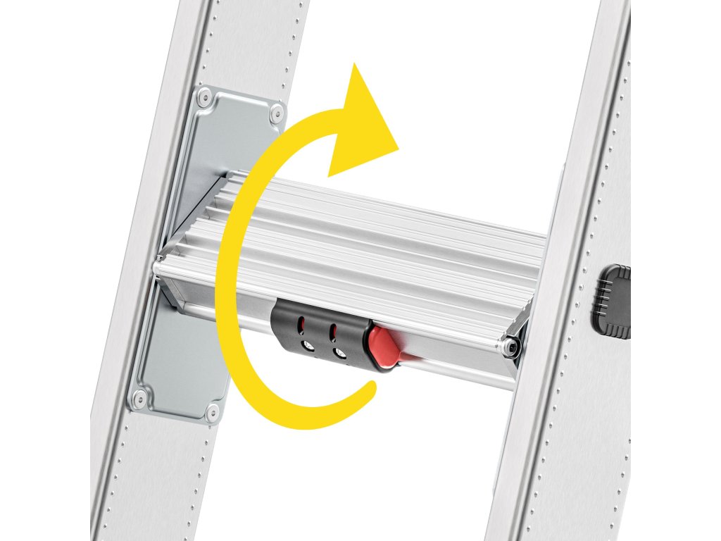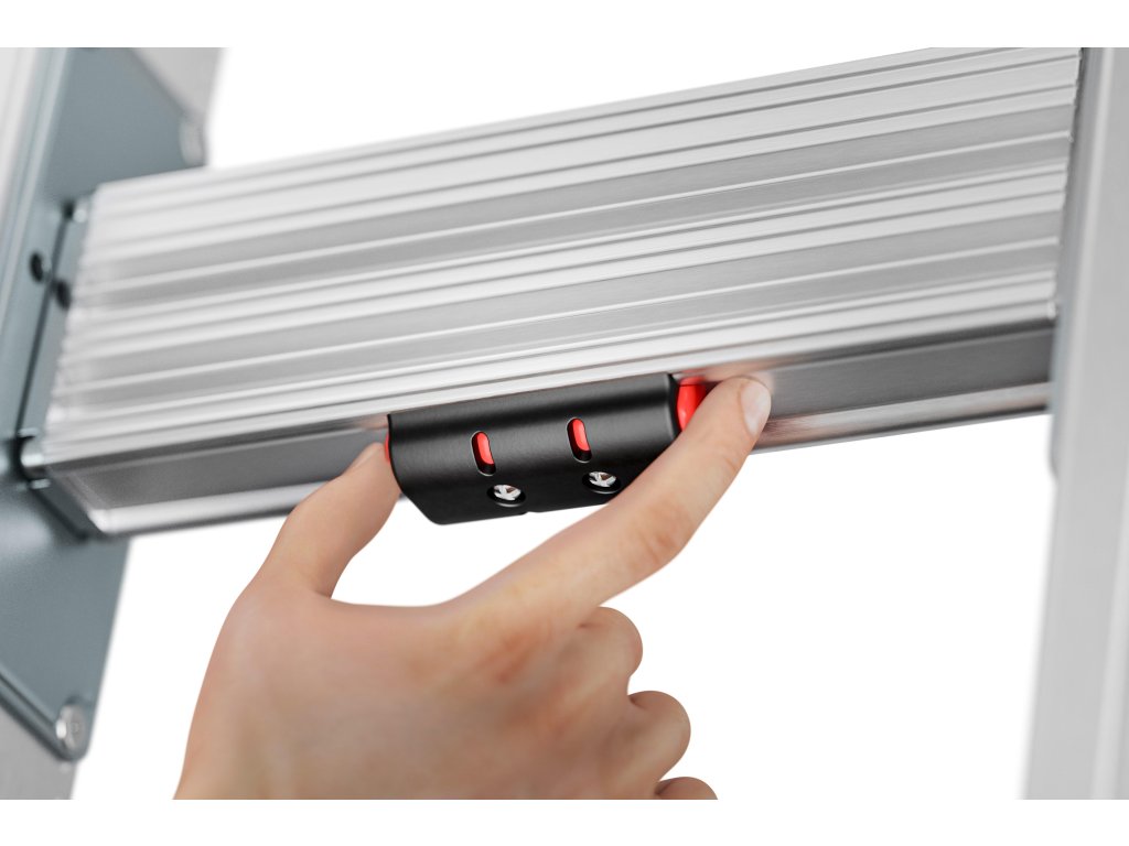 - INOVACE: 3 otočné úrovně s velkým půdorysem a jednoručním bezpečnostním zámkem vytvářejí bezpečné a ergonomické pracoviště na žebříku