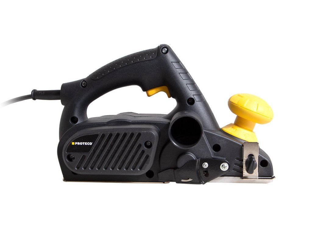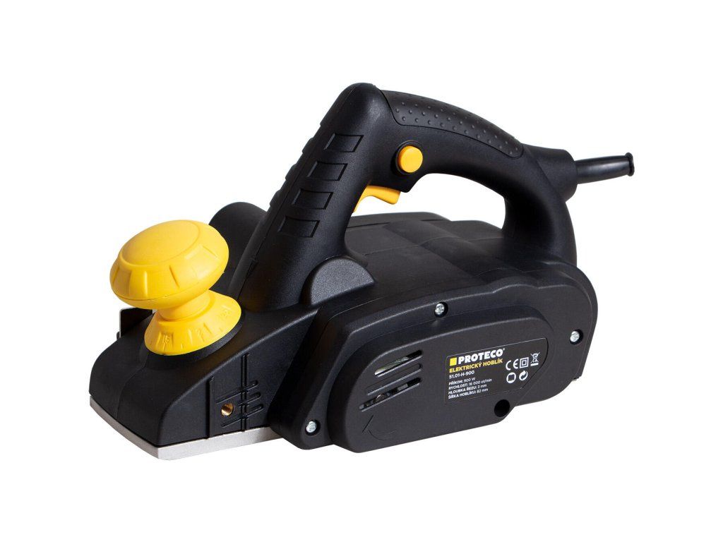 Elektrický hoblík PROTECO je vhodným nástrojem pro opracování a hoblování materiálu jako jsou břevna, hranoly a desky. Zajistí kvalitní opracování dřeva bez zbytečné námahy, protože je opatřen elektromotorem o výkonu 900 W. Nabízí snadno nastavitelný úběr v rozmezí od 0 až do 3 mm. Šířka hoblování a šířka záběru je 82 mm poskytuje nejlepší výsledek. Díky tomu dosáhnete efektu dle Vašich představ. Lze jej také použít pro vytváření falců, tedy žlábků a drážek. Je vybaven protiskluzovou ergonomickou rukojetí, jež poskytuje náležitý komfort. Elektrický hoblík řeže konstatní rychlostí, díky tomu se neucpe hoblinamy. Potěší také snadnou údržbou a výměnou součástek při jejich opotřebení. Na hoblík lze také připojit odsavač pilin nebo vysavač. Výhody a charakteristické znaky: - Příkon 900 W - Aretace vypínače - Hoblovací plocha 82 mm - Funkce falcování až 11mm - Nastavitelná hloubka 0 - 3 mm - Ergonomicky tvarovaná rukojeť (pro leváky i praváky) - Kompaktní rozměry a nízká hmotnost Součástí balení: - 1x Vodící lišta - 1x Utahovací klíč - 1x Imbusový klíč - 1x Sáček na prachDoplňkové parametry