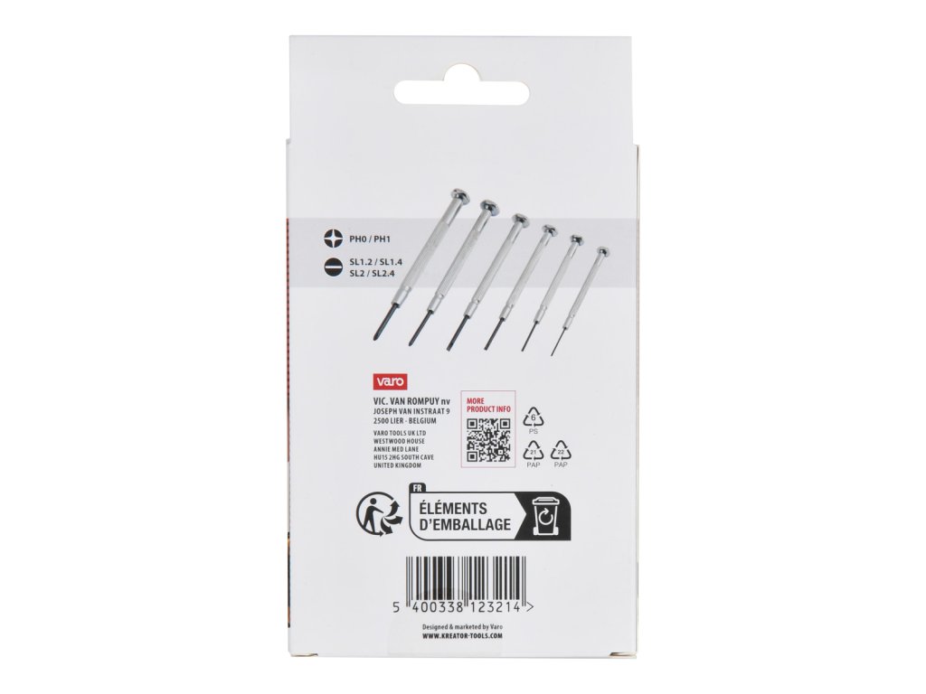 Tyto přesné šroubováky KRTH22102 od Kreator jsou ideální pro detailní a přesnou práci. Sada obsahuje 6 plochých šroubováků.Obsah balení:
