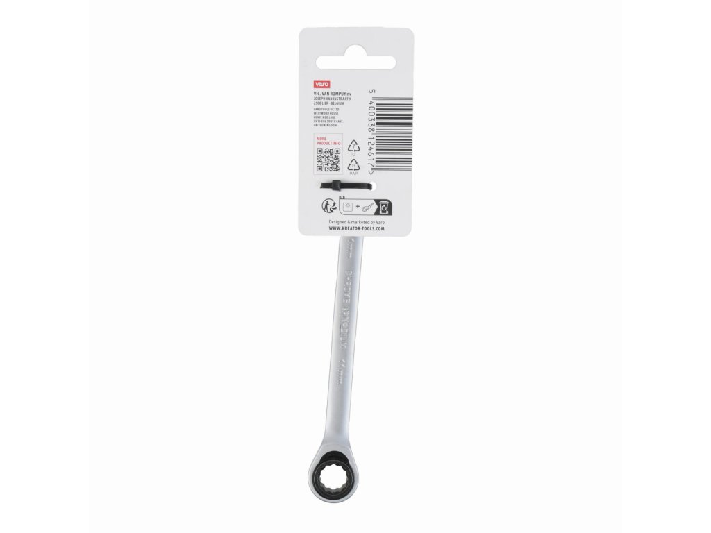Tento kombinovaný očko ráčna / otevřený klíč KRTH30504 od Kreator je vyroben z vysoce kvalitní chrom-vanadiové slitiny. Délka klíče je 167 mm a má průměr 11 mm. Očko je opatřeno kvalitním strojkem, který má 72 zubů.Obsah balení: