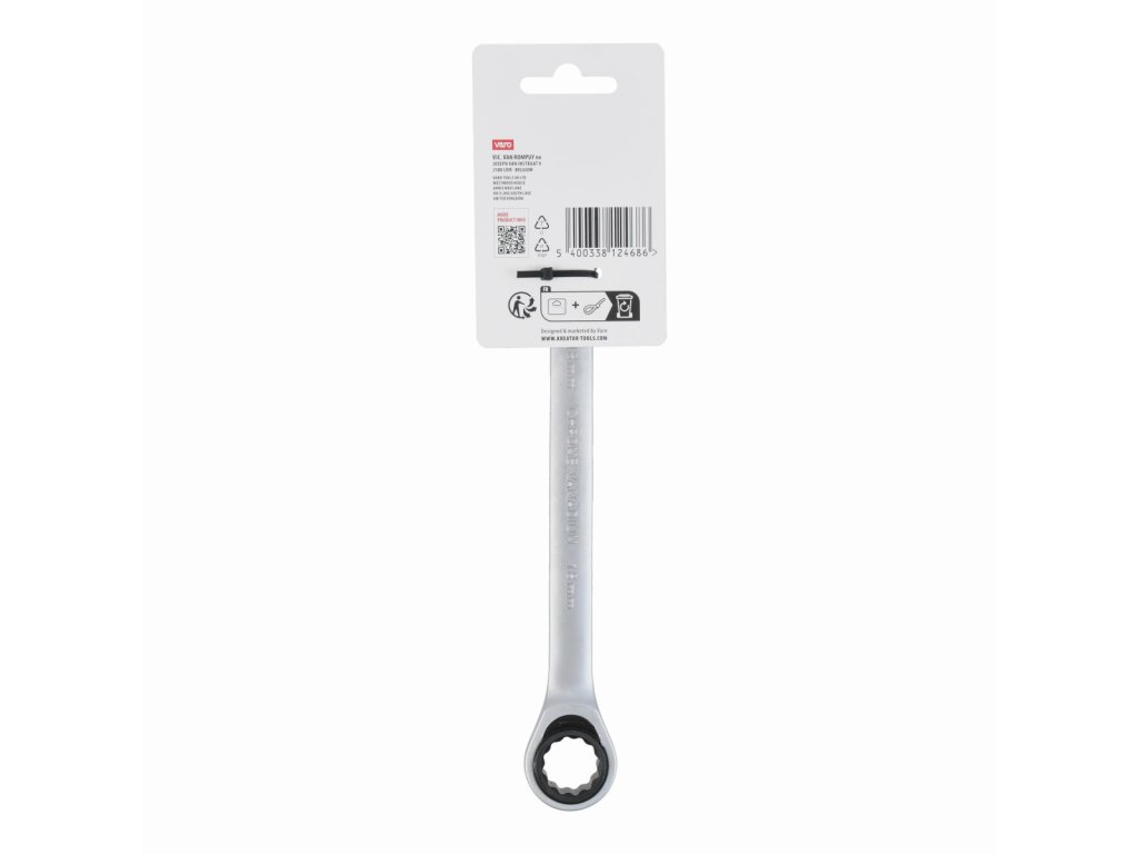 Tento kombinovaný očko ráčna / otevřený klíč KRTH30511 od Kreator je vyroben z vysoce kvalitní chrom-vanadiové slitiny. Délka klíče je 222 mm a má průměr 18 mm. Očko je opatřeno kvalitním strojkem, který má 72 zubů.Obsah balení:
