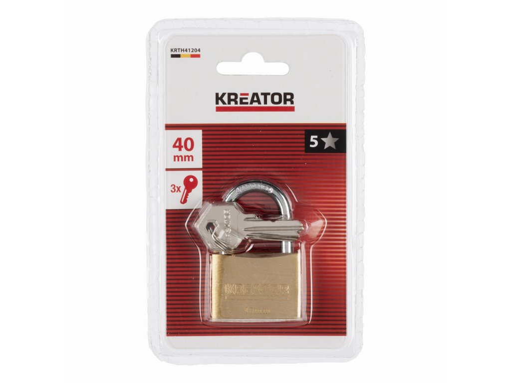 Tento robustní visací zámek KRTH41204 od Kreator má mosazné tělo a ocelový závěs, díky čemuž máte stoprocentní jistotu, že vaše věci jsou bezpečně zajištěné. Součástí zámku jsou 3 klíče.Obsah balení: