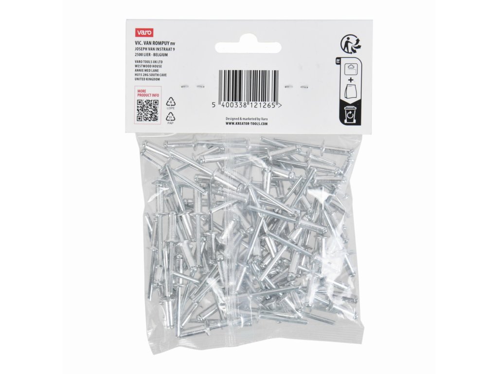 Tyto trhací nýty KRTH62705 z naší řady Kreator mají průměr 4,8 mm. Používejte je k rychlému a bezšroubovému spojení kovových, hliníkových nebo plastových předmětů o tloušťce až 10 mm. To se provádí pomocí nýtovacích kleští. Balení obsahuje 100ks.Obsah balení: