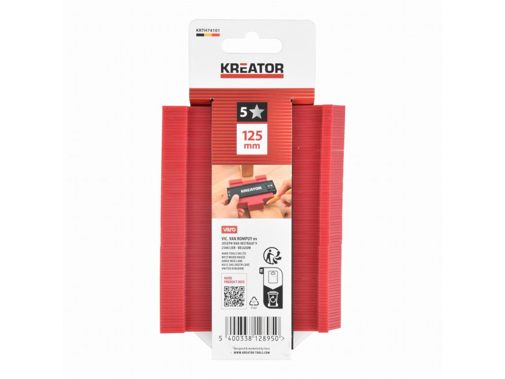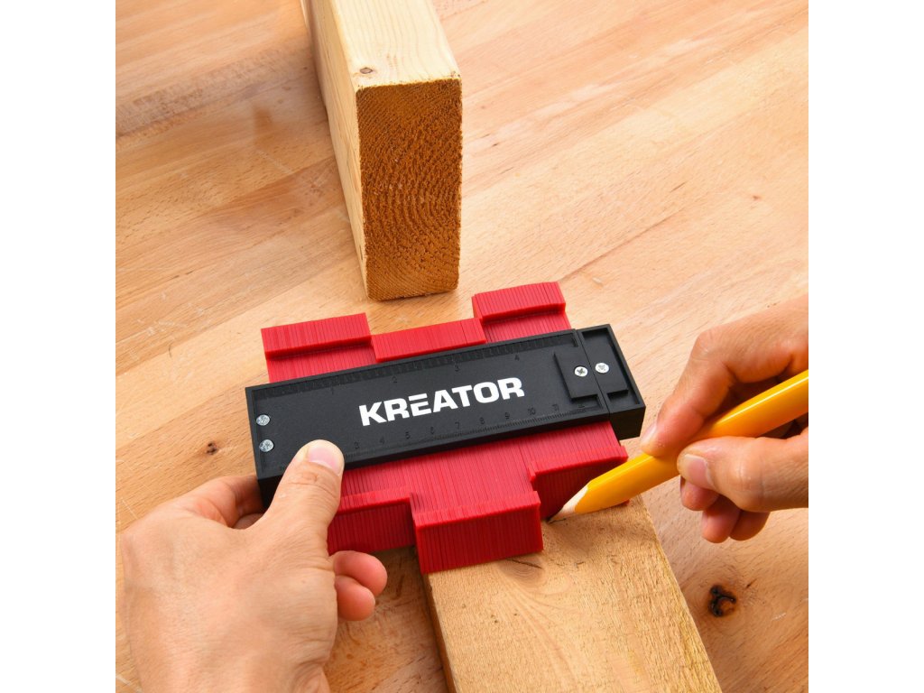 Obrysová šablona profilů KRTH74101 z naší řady Kreator je praktický nástroj pro přesné kopírování tvarů a nepravidelných obrysů předmětů, často používaný při pokládání podlah, karosářských pracích nebo v truhlářství. Obrysová měrka se skládá z řady jemných pohyblivých lamel, které se po přiložení k předmětu přizpůsobí jeho tvaru. Tento obrys lze následně snadno přenést na jiný materiál, například na dlaždici nebo dřevěnou desku, pro přesné vyříznutí. Délka této měrky je 125 mm, proto je její využití vhodné spíše v menších prostorech.Obsah balení: