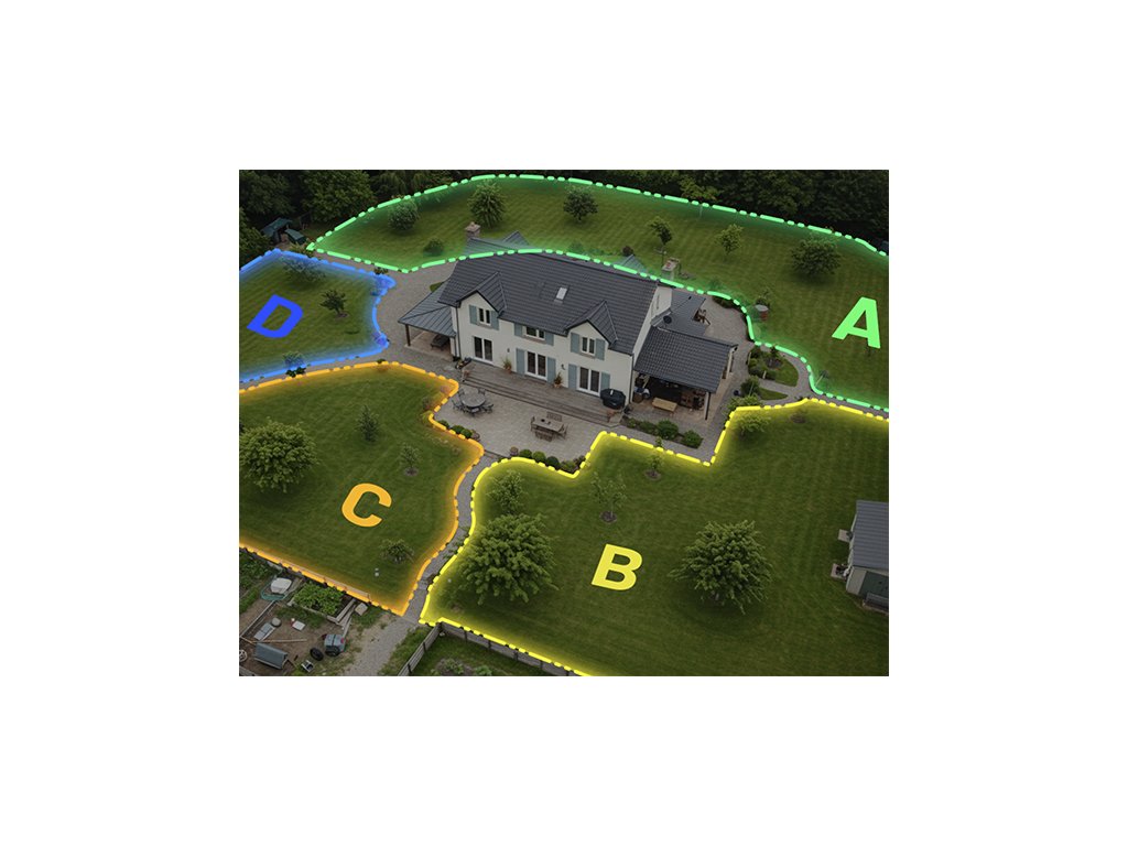 - Nastavení až 20 sečících oblastí pro různé části zahrady
