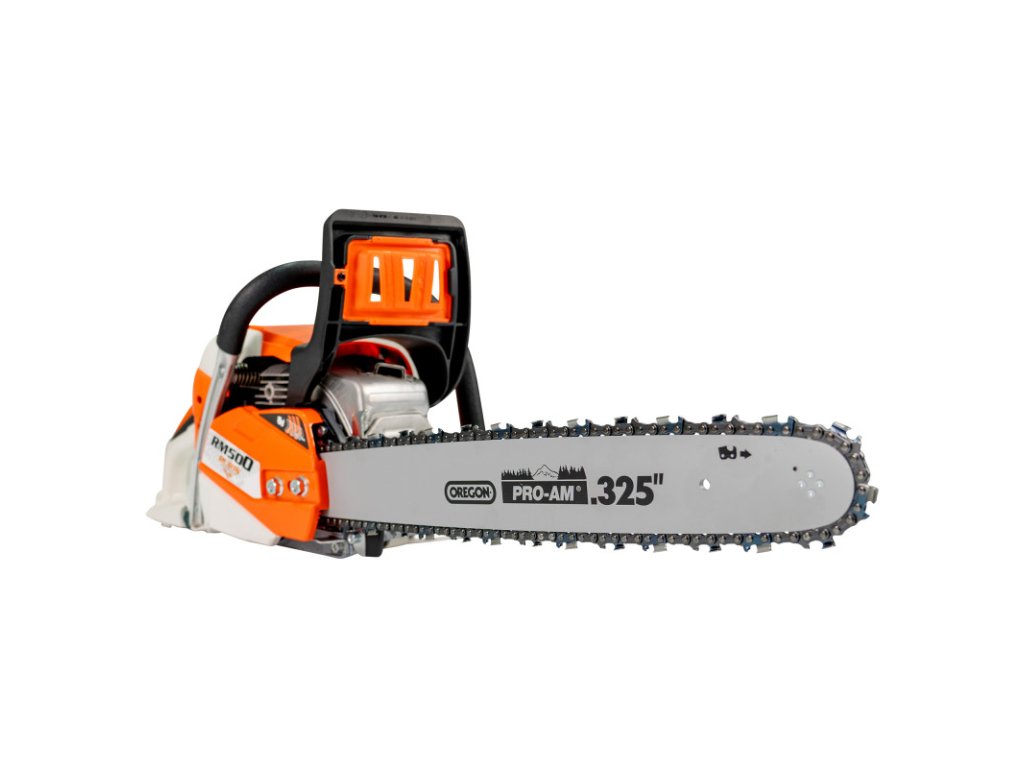 Řetězová motorová pila RURIS RM500 je vybavena profesionální značkovou lištou a řetězem Oregon a japonským karburátorem Walbro.