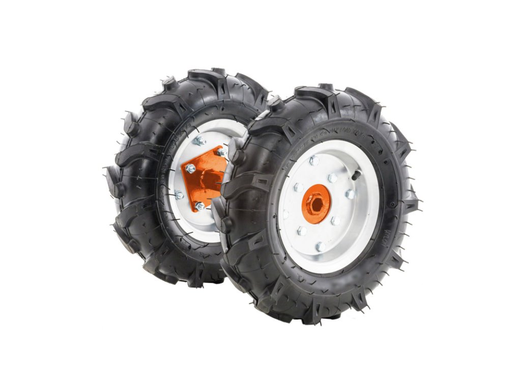 Sada gumových nafukovacích kol spolu s poloosami. Rozměr kol: 400x10, Vhodné pro kultivátory RURIS s osami o průměru 22 mm.