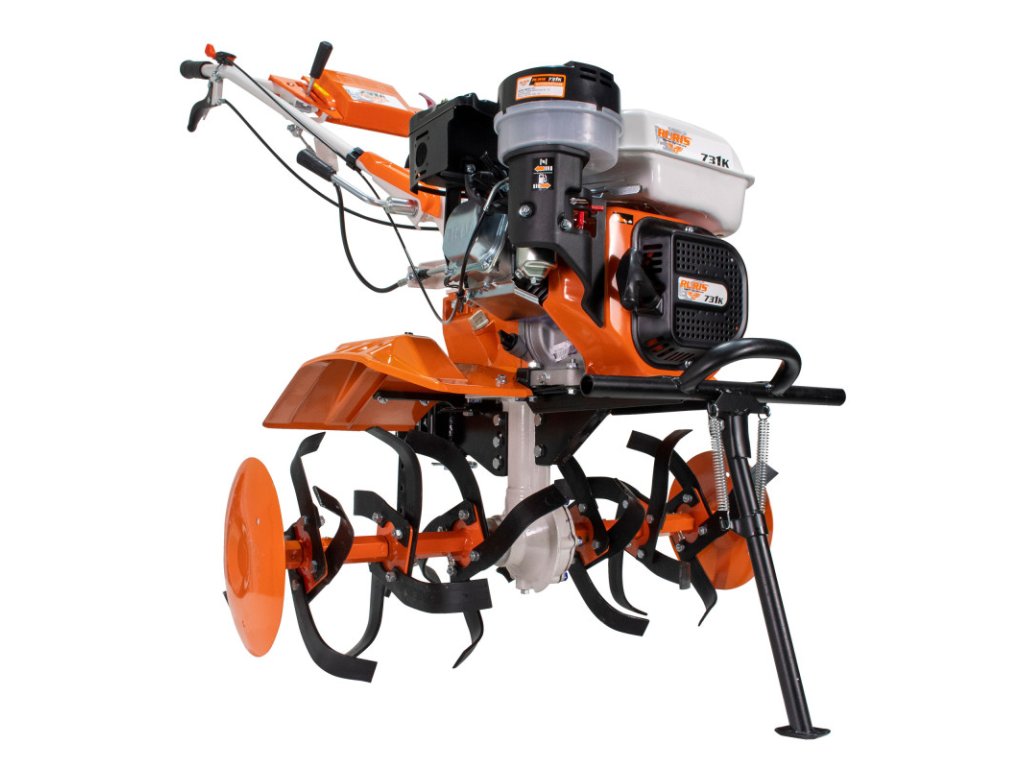 Kultivátor RURIS 731K je vybaven 4-taktním motorem poháněným benzínem a je ideální pro práci na větších plochách, s pracovní šířkou 560 - 830 mm, je schopen obdělávat plochu mezi 600 - 1000 m2/h.