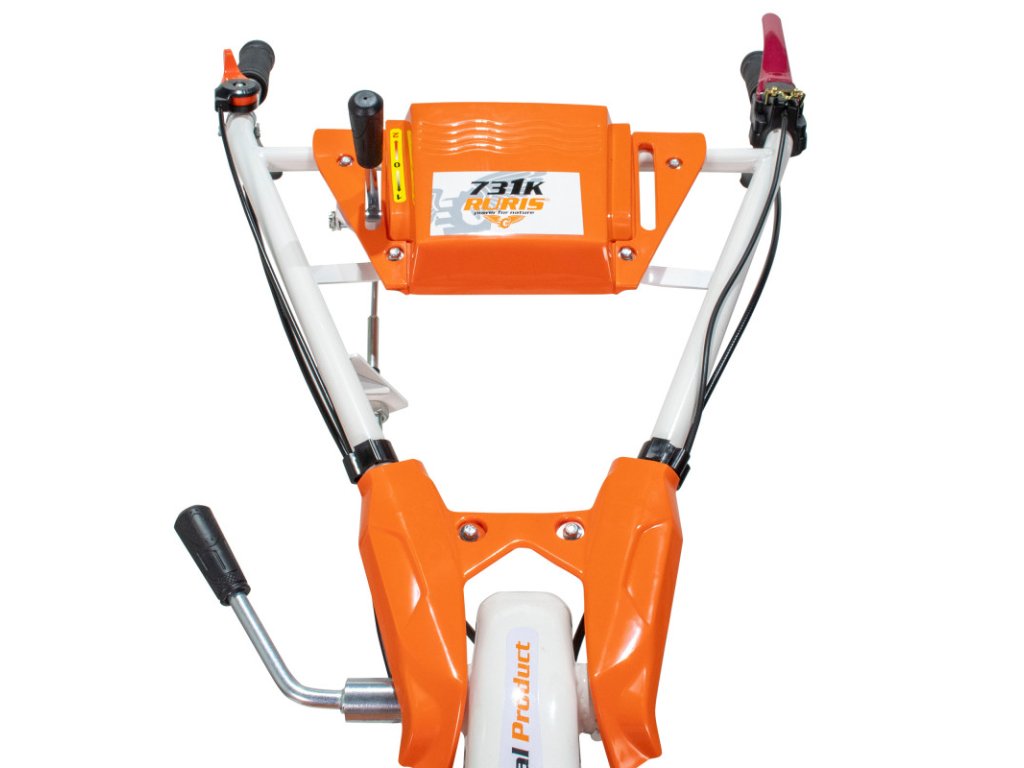 - Kultivátor RURIS 731K lze snadno ovládat díky řadící páce Easy Control, která je vybavena pákovým systémem, který uživateli pomáhá snadno měnit převodové stupně bez mechanického indexování převodů v převodovce.