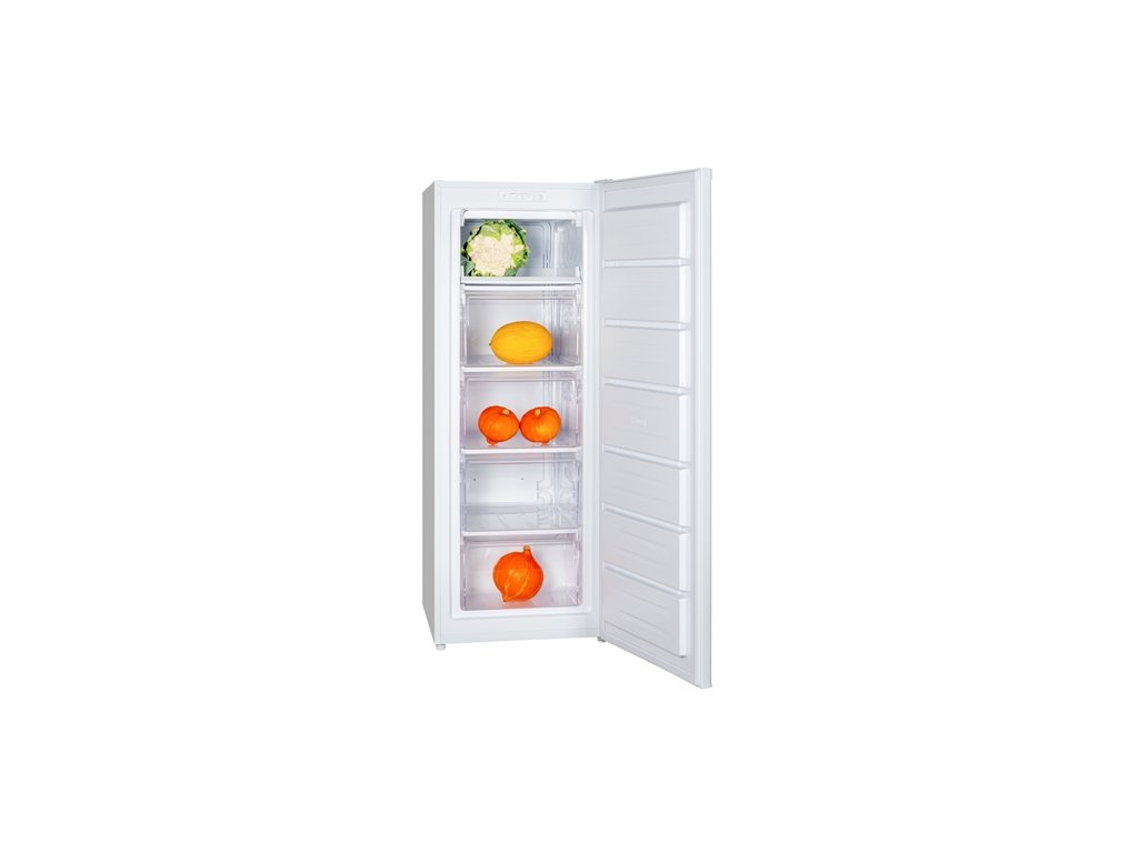 Vnitřní prostor nabízí celkový užitný objem 168 l. Uložit je lze v 5 oddělených, jednoduše přístupných zásuvkách, které jsou pro lepší přehlednost průhledné. Jedna ze zásuvek má odklápěcí dvířka. Mraznička při svém výkonu rozhodně nezaostává, zmrazovací kapacita dosahuje 7,8 kg během 24 hod. Navíc při náhlém výpadku proudu dokáže uchovat potraviny zmrazené až po dobu 14 hod. Nastavitelné nožičky dovolují přizpůsobit výšku spotřebiče, například při nerovném podkladu. Další předností této mrazničky jsou přestavitelné dveře.