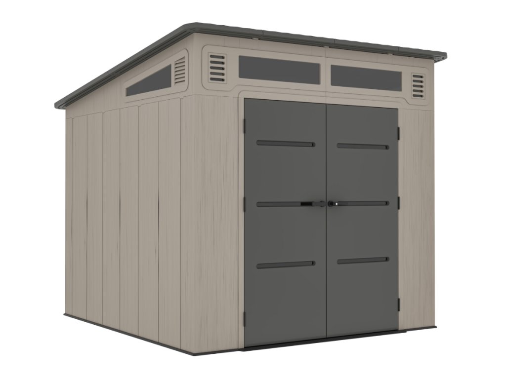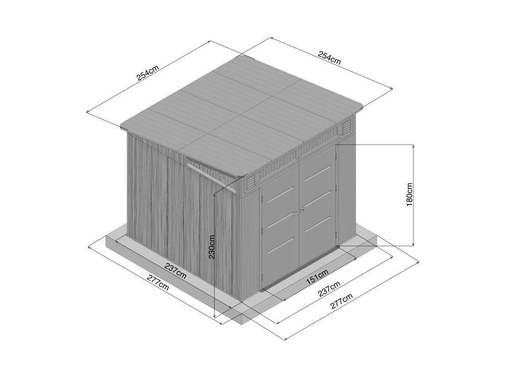 Robustní plastový domek "nové generace" k uskladnění zahrádkářských, sportovních, bazénových, grilovacích, campingových, motoristických a dalších potřeb. Moderní design, snadná montáž, celoroční použití. Zahradní domek má nosnou kovovou konstrukci a dvojité stěny, střecha, dvojité dveře, podlaha jsou vyrobeny z masivního velmi odolného a prakticky nerozbitného plastu. Plastová protiskluzová podlaha je součástí domku (je v ceně). Domek je vybaven dvoukřídlými dveřmi na pantech. Síla dvojité plastové stěny je 22 mm, síla střechy je 36 mm. Sklon střechy je 30o, což výrazně snižuje množství a tlak sněhu na střechu. Materiál domku (extrémně odolný polyethylen s UV filtrem) nežloutne ani nekřehne, takže odpadá pravidelné natírání domku jako je nutné v případě např. dřevěných domků - zahradní plastový domek je prakticky bezúdržbový. Domek je navržen a vyroben tak, aby montáž byla co nejjednodušší a nejkratší. Jednotlivé díly pouze zaklapnete do sousedních dílů a spoj zajistíte šroubkem.