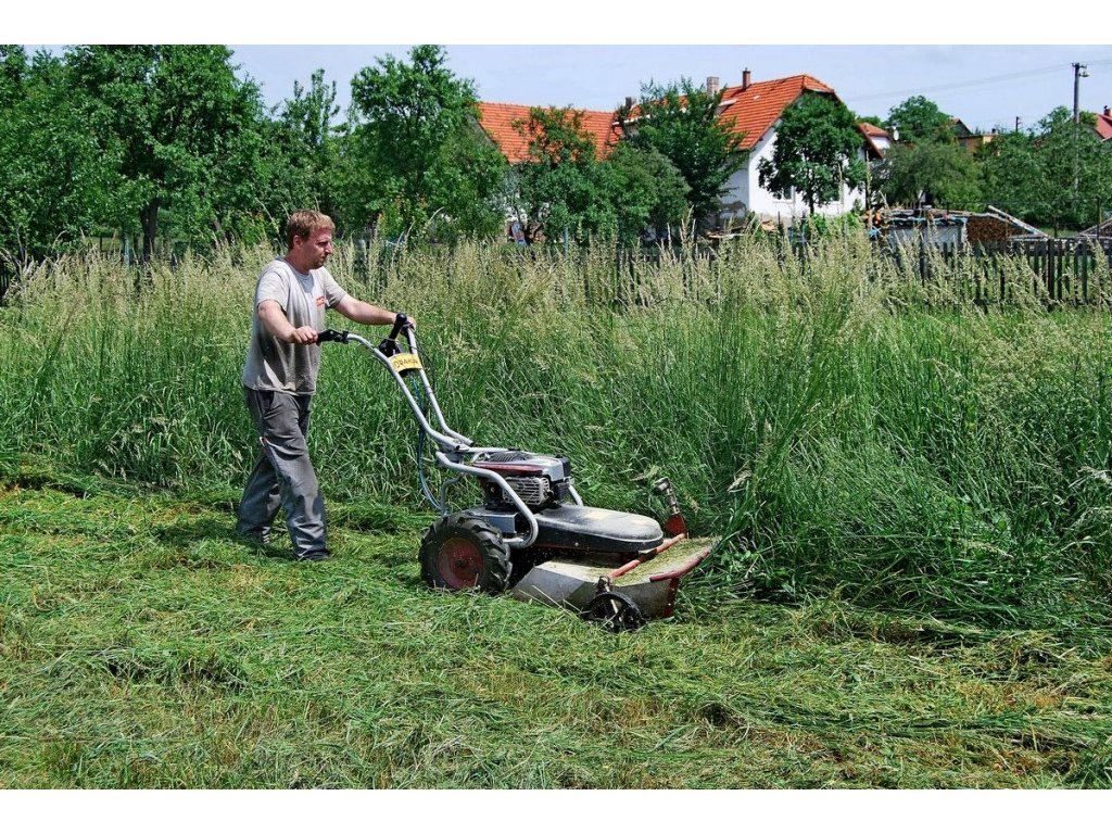 Novinka 2024 - stavebnicový mulčovač s pojezdem, záběr sečení 91 cm, max. výkon motoru Briggs&Stratton 13,2 HP, hydrostatická převodovka a plynulá změna rychlosti vpřed i vzad