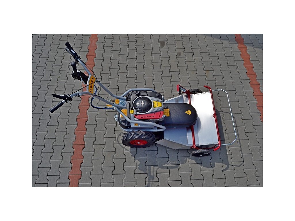 Stavebnicový mulčovač s hydrostatickou převodovkou a plynulou změnou rychlosti vpřed i vzad. Náprava s diferenciálem a automatickou uzávěrkou zjednoduší práci při objíždění překážek, přejíždění po asfaltu atd. Při práci se můžete vozit na přípojné sedačce. Ke stroji připojíte více než 15 dalších pracovních nástavců.