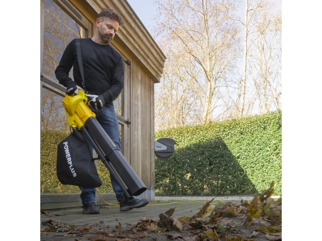 Výkonný elektrický vysavač, foukač listí POWEG4030 od Powerplus pro rychlý a efektivní úklid zahrady. S výkonem motoru 3300 W, rychlostí vzduchu 250 km/h a průtokem vzduchu 10 m3/min snadno odstraníte volné listí a další zahradní nečistoty.