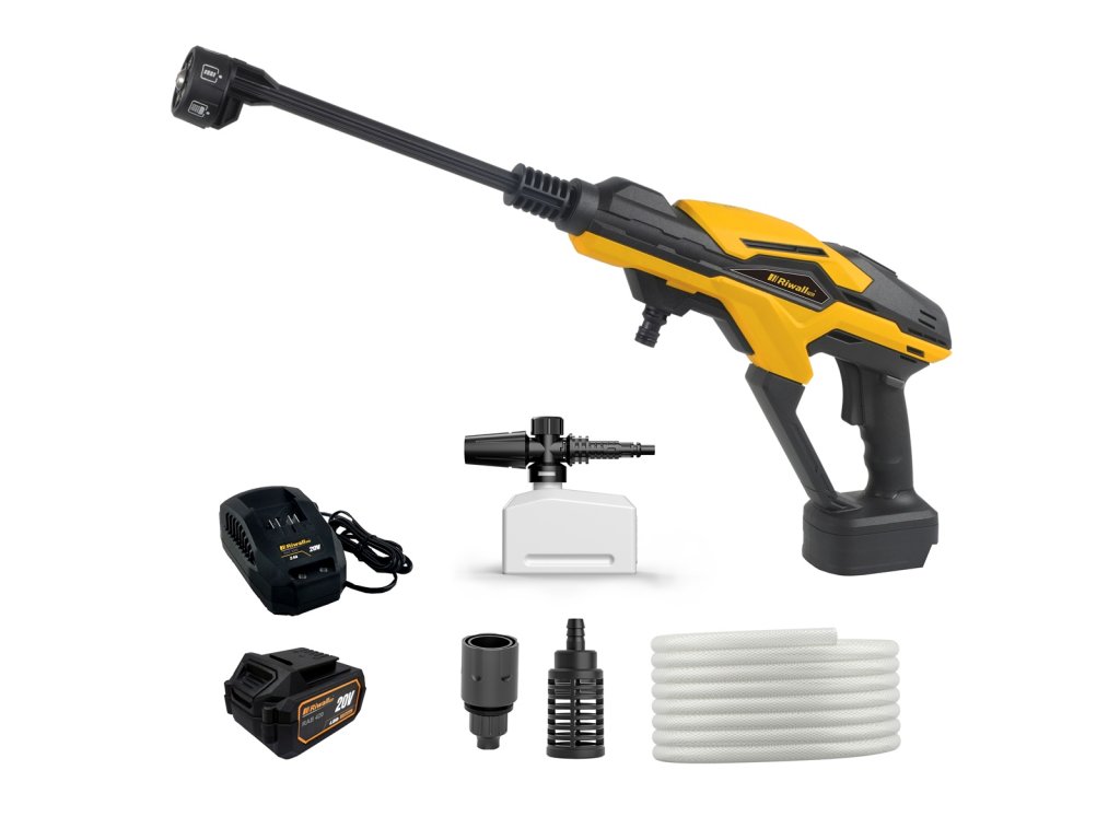 Myčka je plně kompatibilní se všemi bateriemi a nabíječkami Riwall 20V a na baterii je poskytována dvouletá plná záruka s automatickou výměnou za nový kus v případě problému.