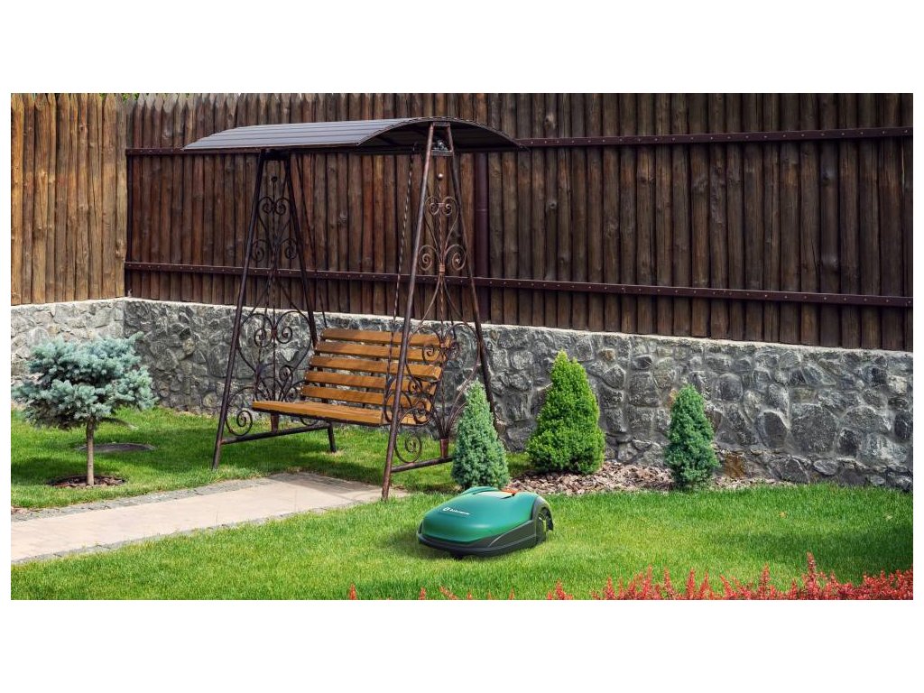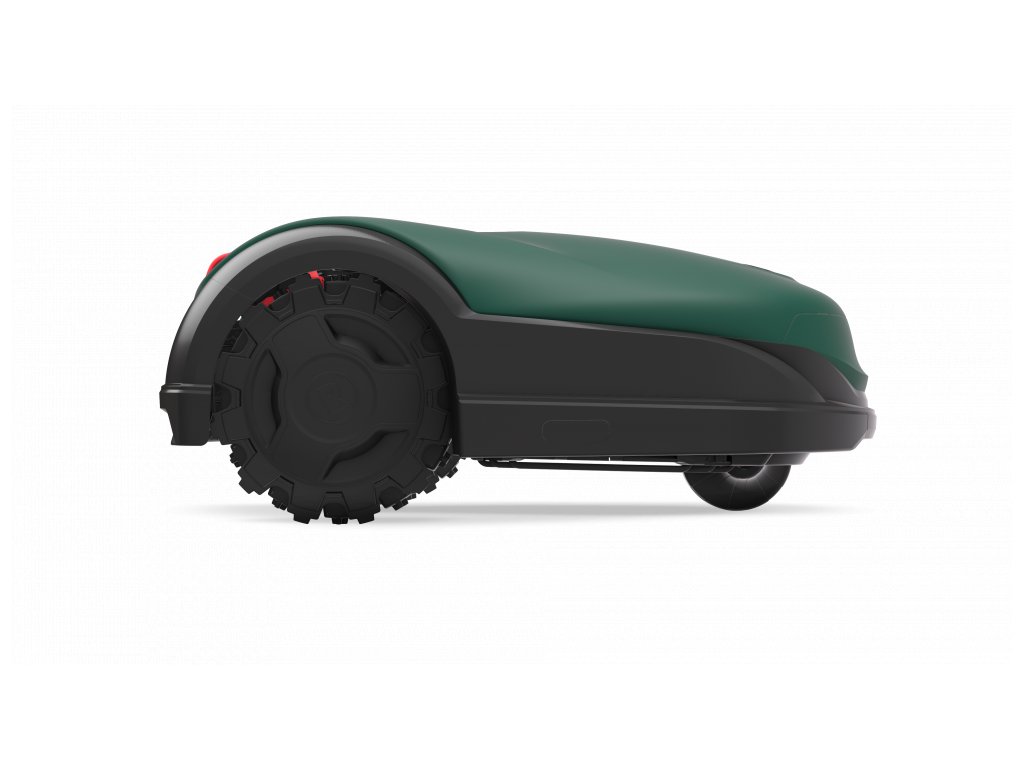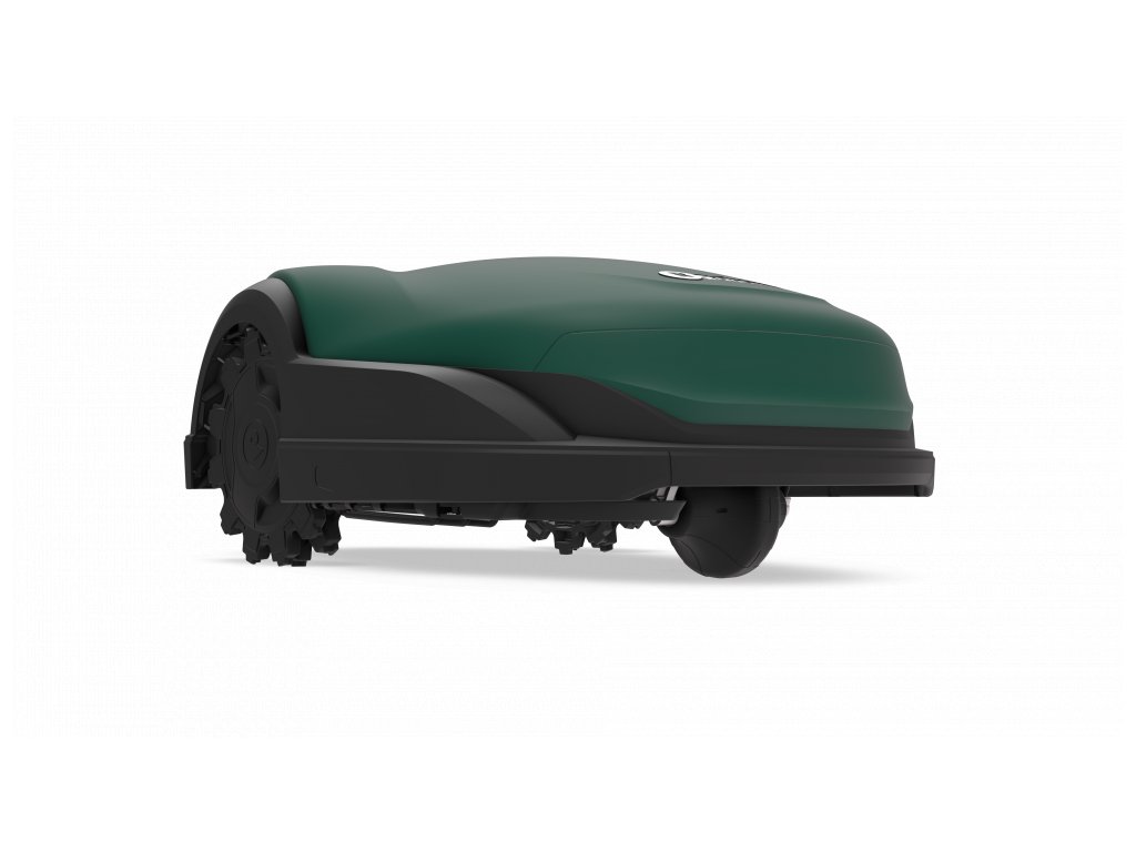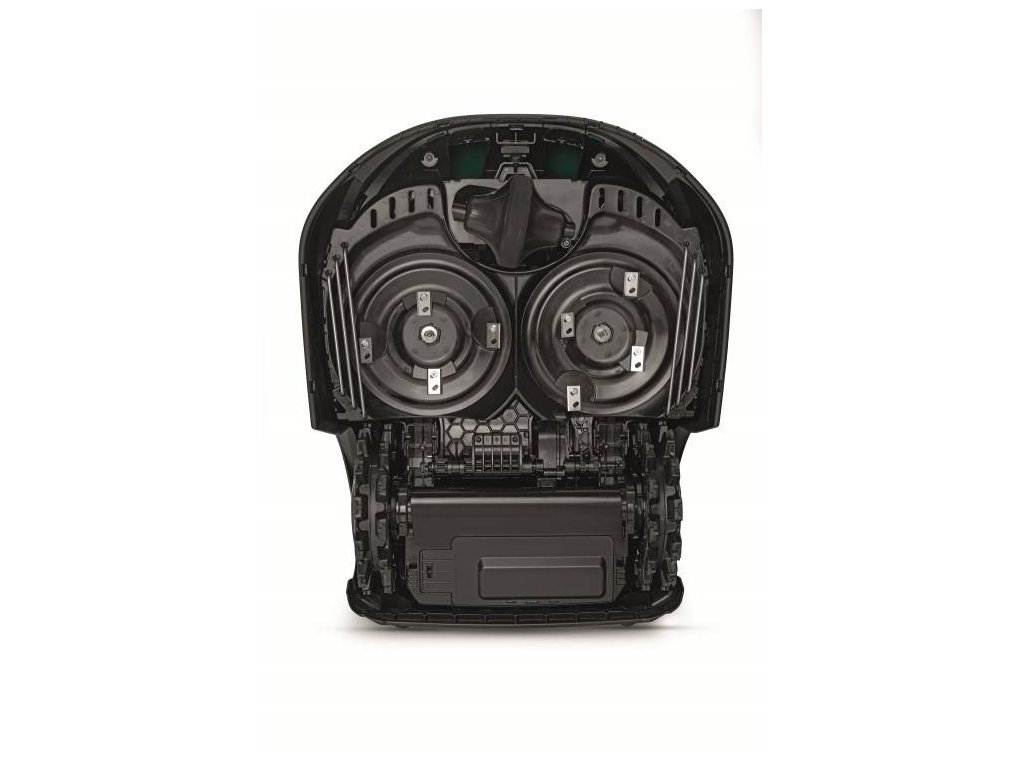 Celé sečení je uloženo v plovoucím rámu, takže perfektně kopíruje terén a vytváří hladký trávník přesně tak, jak je tvarovaná Vaše zahrada. Kapotáž stroje je uložena na 4 bodech umožňujících citlivé snímání nárazů ze všech stran, z vrchu i ze spodu. Celá kapotáž slouží, jako nárazník a celý výlisek kapotáže je důkladně vyztužen. Kapotáž překrývá také pojezdová kola, tvoří kryt sečící jednotce a současně vytváří bezpečnostní vzdálenost dle norem proti poranění o žací mechanismus. Sekací talíře jsou záměrně umístěny tak, aby byly co nejvíce u kraje a tím eliminuje nedosečenou plochu na minimum. Stroj několikrát týdně objede zahradu po obvodovém drátu proti směru hodinových ručiček, čímž zajistí perfektní střih okrajů. Při použití okrajové dlažby ve výši trávníku se můžete dosekávání vyvarovat úplně.