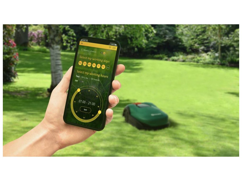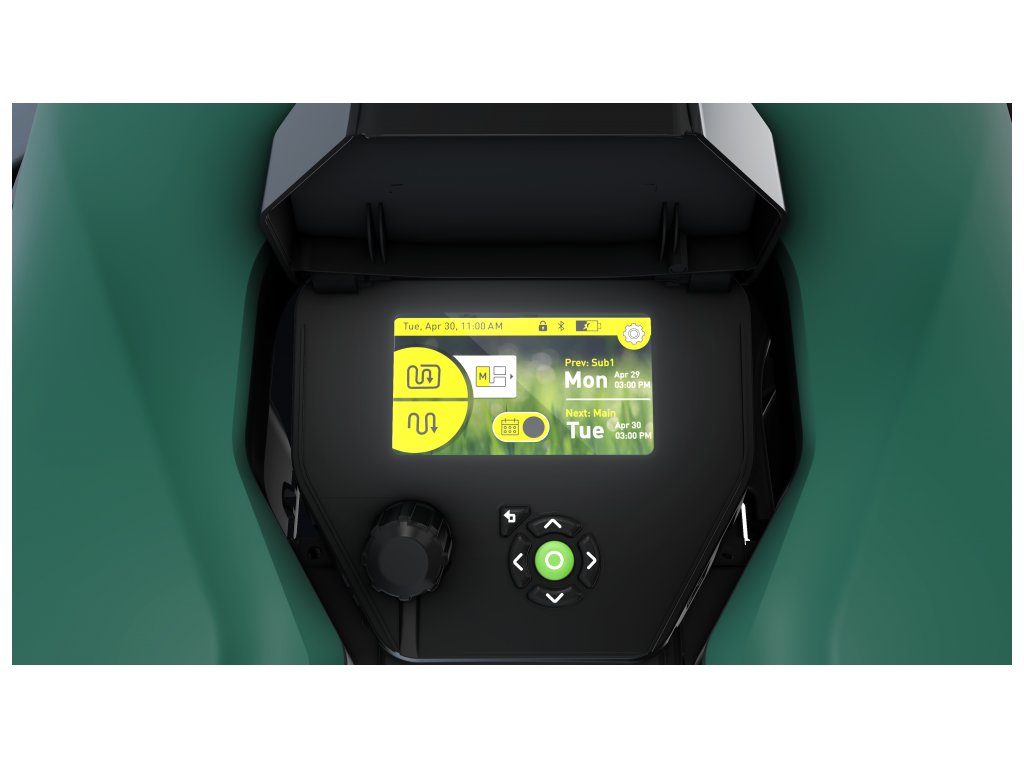 K ovládání stroje slouží barevný dotykový 4,3 display uložený pod výklopným krytem. Toto řešení vylučuje namáhání a blednutí všech ovládacích prvků slunečním zářením i povětrnostním i vlivy. Display má intuitivní menu, pomocí kterého snadno nastavíte vše důležité. Různě můžete měnit: velikost sečené plochy, nastavení ostrůvků na zahradě, zóny sečení, nastavení okrajů, držení se blízko obvodového drátu, datum a čas pro přesné nastavení pracovního plánu ... a další užitečné informace. Mobilní aplikace Robomow*** umí vše, co výše uvedený display, navíc můžete zjistit nejen stav sekačky, stav baterie, ale i historii provozu Vaší sekačky.