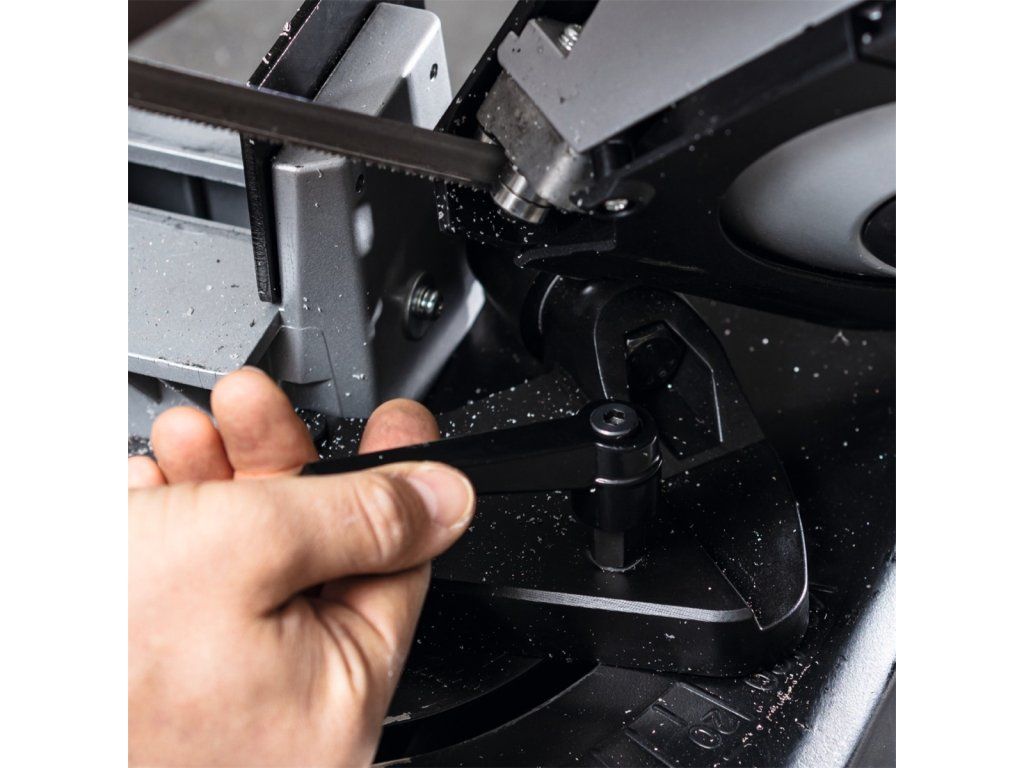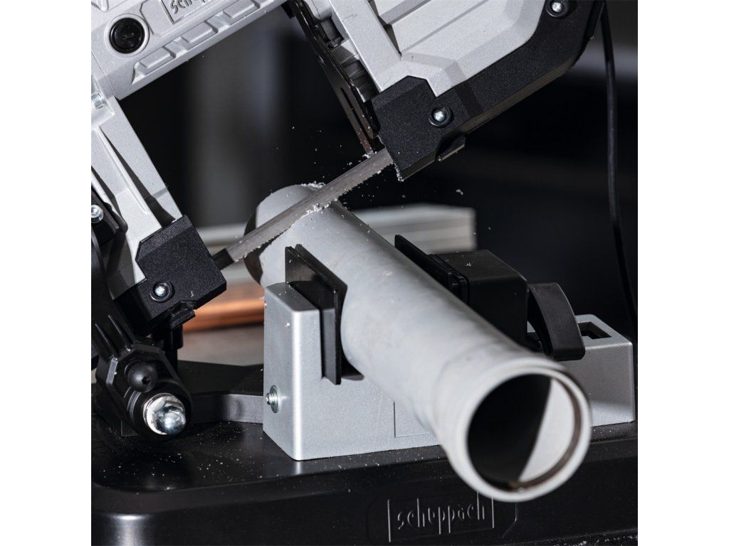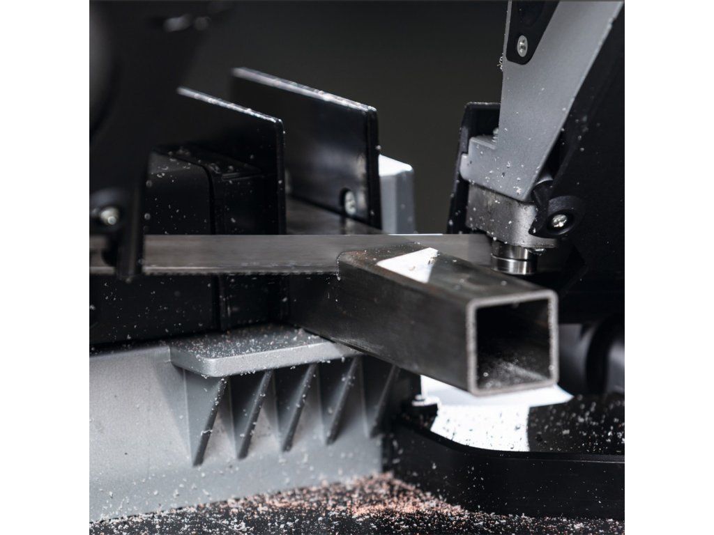 Pila disponuje elektronicky nastavitelnou rychlostí v rozmezí 0,7 až 2,4 m/s, což umožňuje přizpůsobit výkon konkrétnímu materiálu. Skvěle si poradí s ocelí, nerezovou ocelí, železem, slitinami, mědí, PVC i teflonem. Pro přesné řezy je pila vybavena nastavitelným úhlem řezu, dvěma ergonomickými rukojeťmi (přičmež jedna je nastavitelná), LED osvětlením pro dokonalý přehled nad řezem a svěrákem, který je součástí základny.