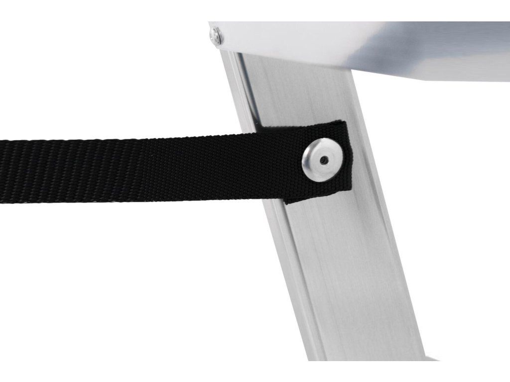 Lehké oboustranné hliníkové schůdky pro nejrůznější činnosti. Výhody a charakteristické znaky - Robustní nárazuvzdorný kovový kloub - 6 bodový nýtový spoj mezi stojkou a stupněm zajišťuje vysokou stabilitu - Protiskluzové, profilované patky šetrné k podlaze - Popruhy jako pojistka proti rozevření s vysokou pevností v tahu RozměryDoplňkové parametry