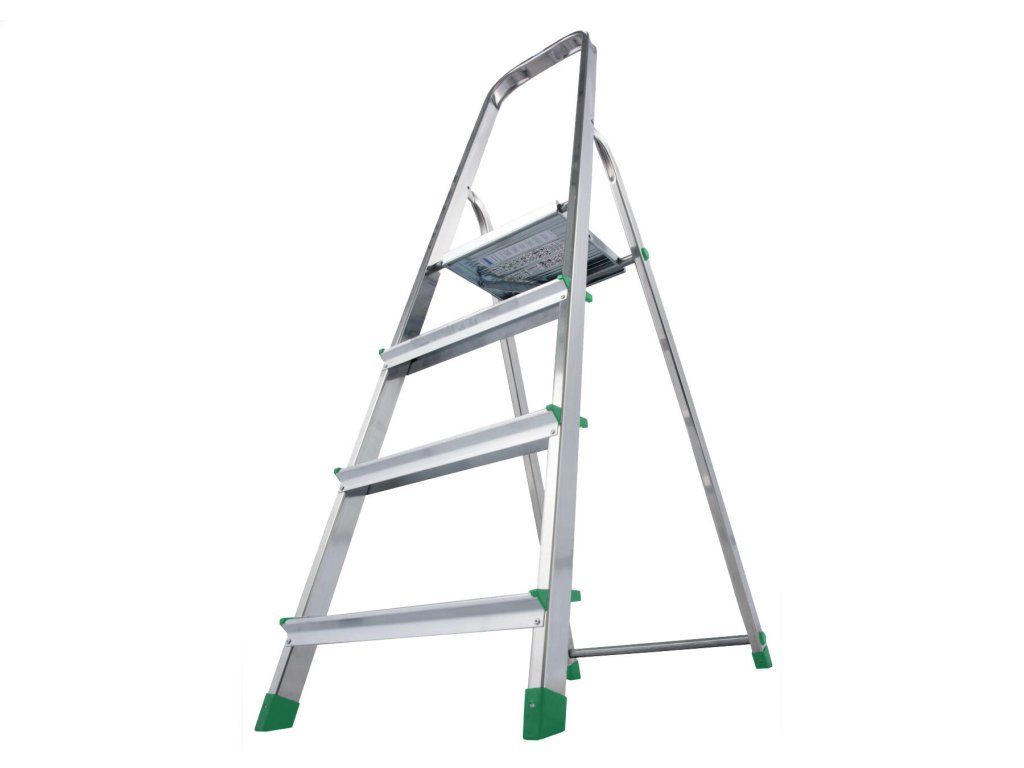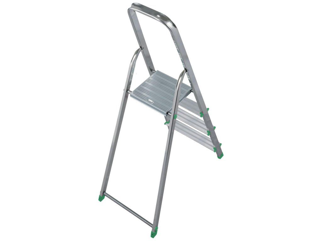Kompaktní jednostranné hliníkové schůdky pro nejrůznější činnosti v interiéru. Výhody a charakteristické znaky - Vysoký bezpečnostní třmen - Nýtované kloubové spoje - Ocelová plošina s protiskluzovým provedením - Pevný nýtovaný spoj mezi stojkou a stupni - Protiskluzové patky zajišťují bezpečné stání - Stabilní stojky i opěry z hliníkových profilů obdélníkového průřezu - Maximální zatížení 150 kg RozměryDoplňkové parametry