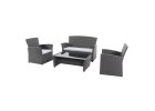 Stolová sestava se skládá ze 4 pohodlných masivně vyztužených křesel v imitaci umělého ratanu s UV filtrem. Zobrazení 360° fotografie produktu >
