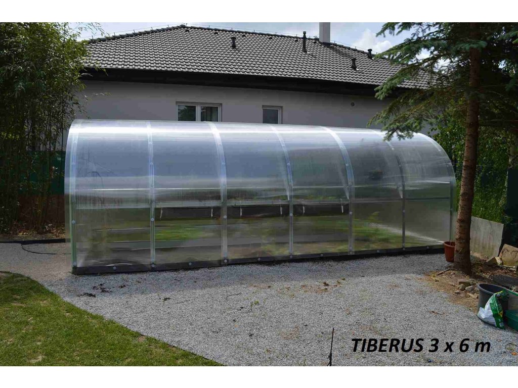 Konstrukce skleníku je sestavena ze silných nosných oblouků (žárově pozinkované ocelové profily síly 1 mm a šířky 56 mm) a doplněna prémiovým komůrkovým polykarbonátem s UV filtrem od britské firmy BRETT MARTIN. Tato kombinace dělá ze skleníků řady LANITPLAST TIBERUS jeden nejkvalitnějších a současně na montáž nejjednodušších skleníků na českém trhu. Jednotlivé profily se vzájemně sešroubují a po jejich sestavení vznikne velmi stabilní oblouková konstrukce bez nutnosti stavby skleníkové podezdívky. Skleník je vybaven kotvami přímo do země. Montáž skleníku zvládnete svépomocí ve dvou až třech osobách. V půdě se zahradní skleník upevňuje zakopáváním patek konstrukce do země, případně jejich zalitím do betonu (doporučujeme).