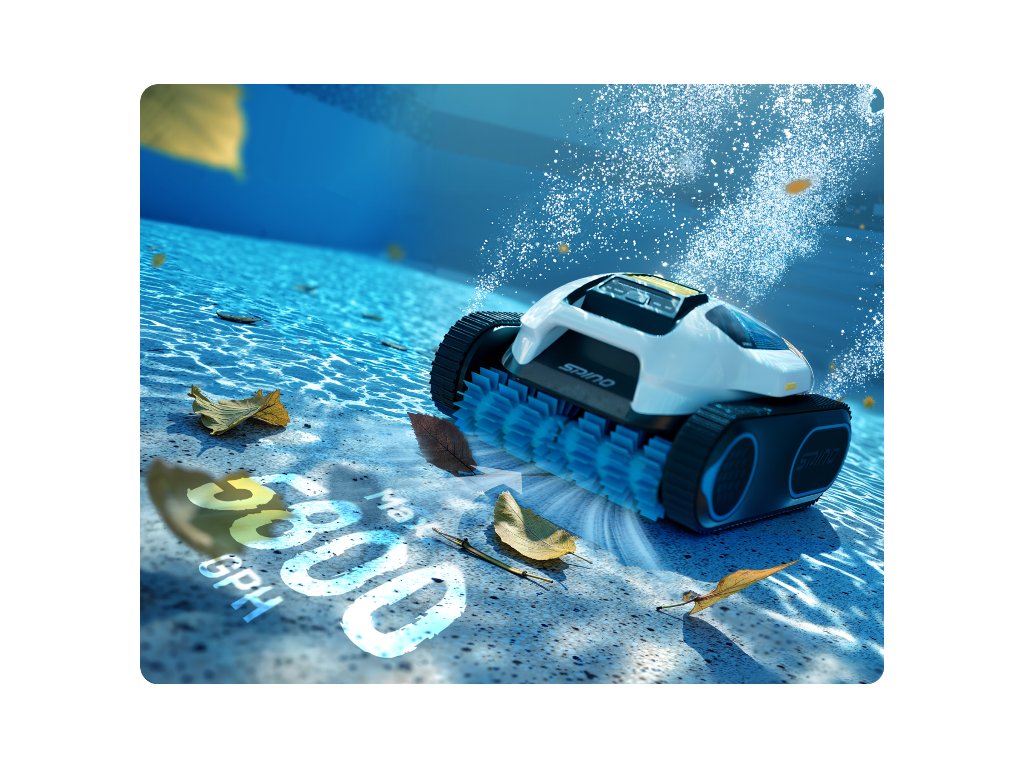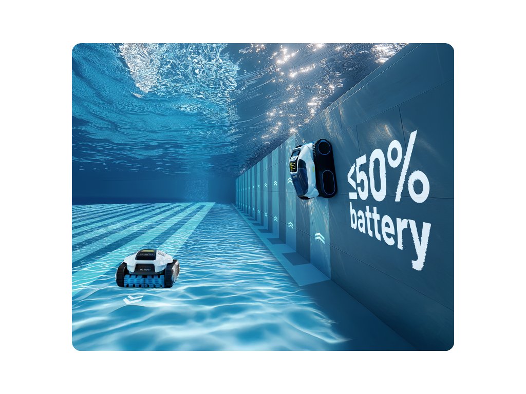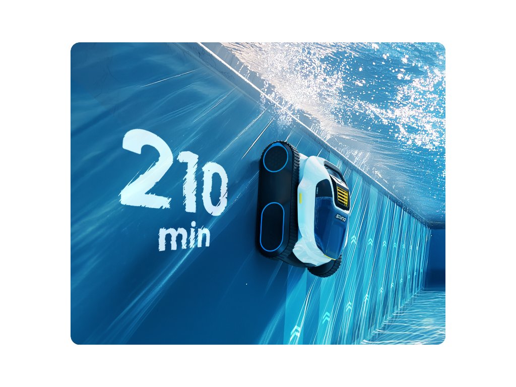 Kvalitní lithiová baterie vydrží pracovat až 210 minut. Inteligentní plánování trasy Smart Arc zajistí kompletní a systematické vyčištění bazénu. Spino E1 nejezdí náhodně a čistí povrch bazénu precizně a postupně tak, aby byl bazén vyčištěn v co nejkratším čase.