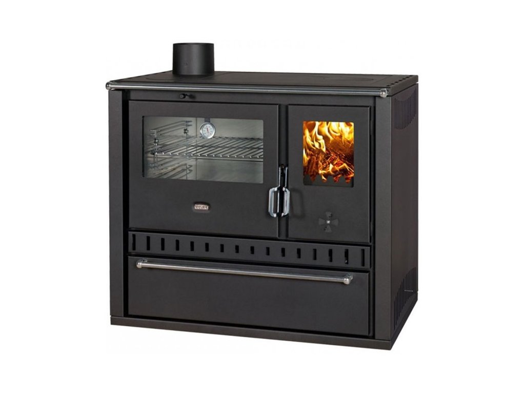 Sporák na tuhá paliva s teplovodním výměníkem PRITY GT W10 FI S DR, nerezová trouba, černá, levá