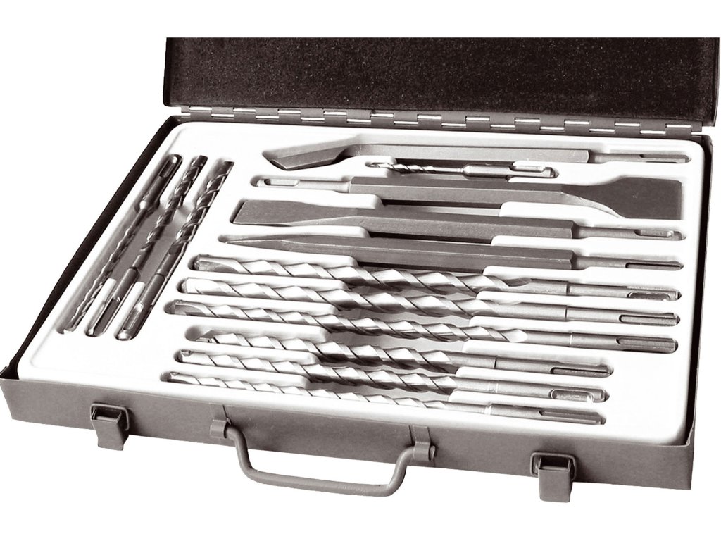 | doplňující parametr: | sekáče 250mm: plochý 20 a 40mm, špičatý, drážkovací vrtáky: ∅5x110mm, ∅6-8-10x160mm, ∅8-10-12x210mm, ∅10-12-14x260mm, v kovové kazetě |
