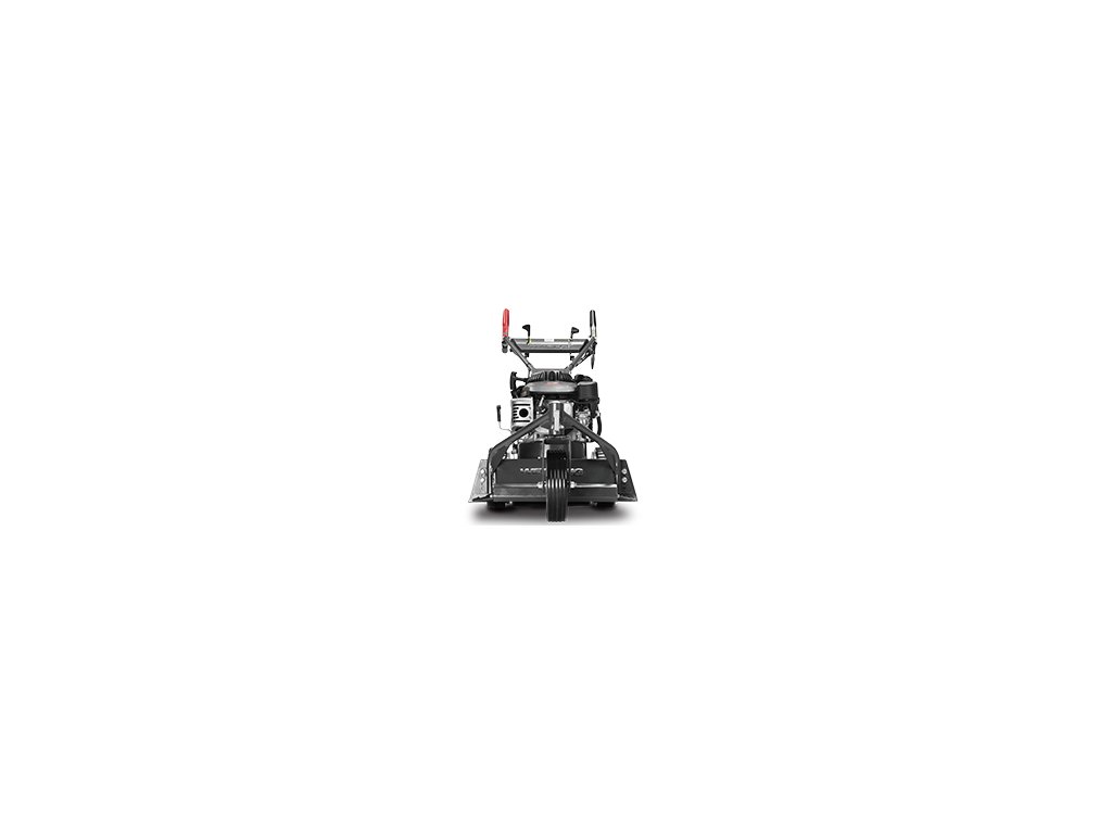 Centrálně umístěné přední kolo lze uzamknout pro lepší vedení stroje v přímém směru nebo ponechat volné pro snazší manévrování. Tato konstrukce výrazně snižuje odpor při sečení vysoké trávy a usnadňuje práci v členitém terénu.