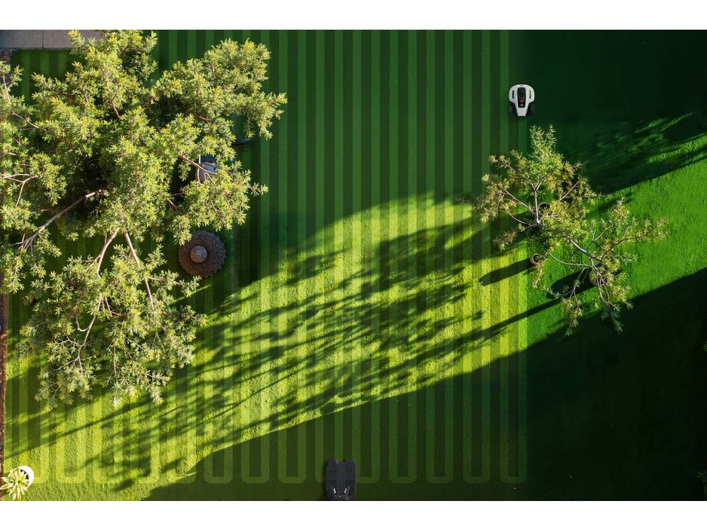 - V režimu DropMow není potřeba žádné mapování – stačí sekačku položit, stisknout tlačítka „Mow & Start“ a sekačka začne sekat v pravidelném vzoru tvaru písmene N ve směru, kterým právě stojí. Dočasně vytvořená mapa se neukládá, což je ideální pro rychlé a jednorázové sečení.