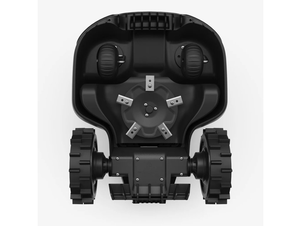 YUKA mini 2 1000 s pohonem zadních kol si poradí se sklonem zahrady až 45% (24°) a přejede nerovnosti na trávníku do velikosti 35 mm.