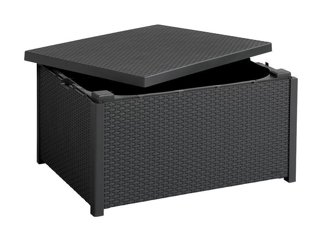 Zahradní stůl Keter Arica grafitovém provedení nabízí velkorysý úložný prostor a elegantní vzhled imitace ratanu. Díky nosnosti 50 kg a rozměrům 79 x 42 x 59 cm poskytne dostatek místa pro odložení nápojů i zahradních doplňků.