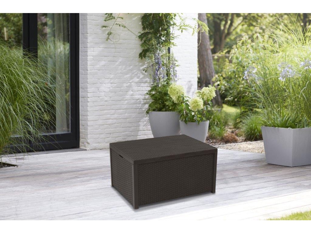 Zahradní stolek Arica využijete nejen jako odkládací plochu, ale také jako praktický úložný box na polštáře, deky nebo další zahradní doplňky. Konstrukce z odolného plastu s povrchem v imitaci ratanu zapadne do moderní i klasické zahrady. Materiál odolává dešti, slunečnímu záření i běžnému opotřebení a zároveň se snadno čistí. Nízká hmotnost 6,6 kg umožňuje snadné přemístění podle aktuální potřeby.